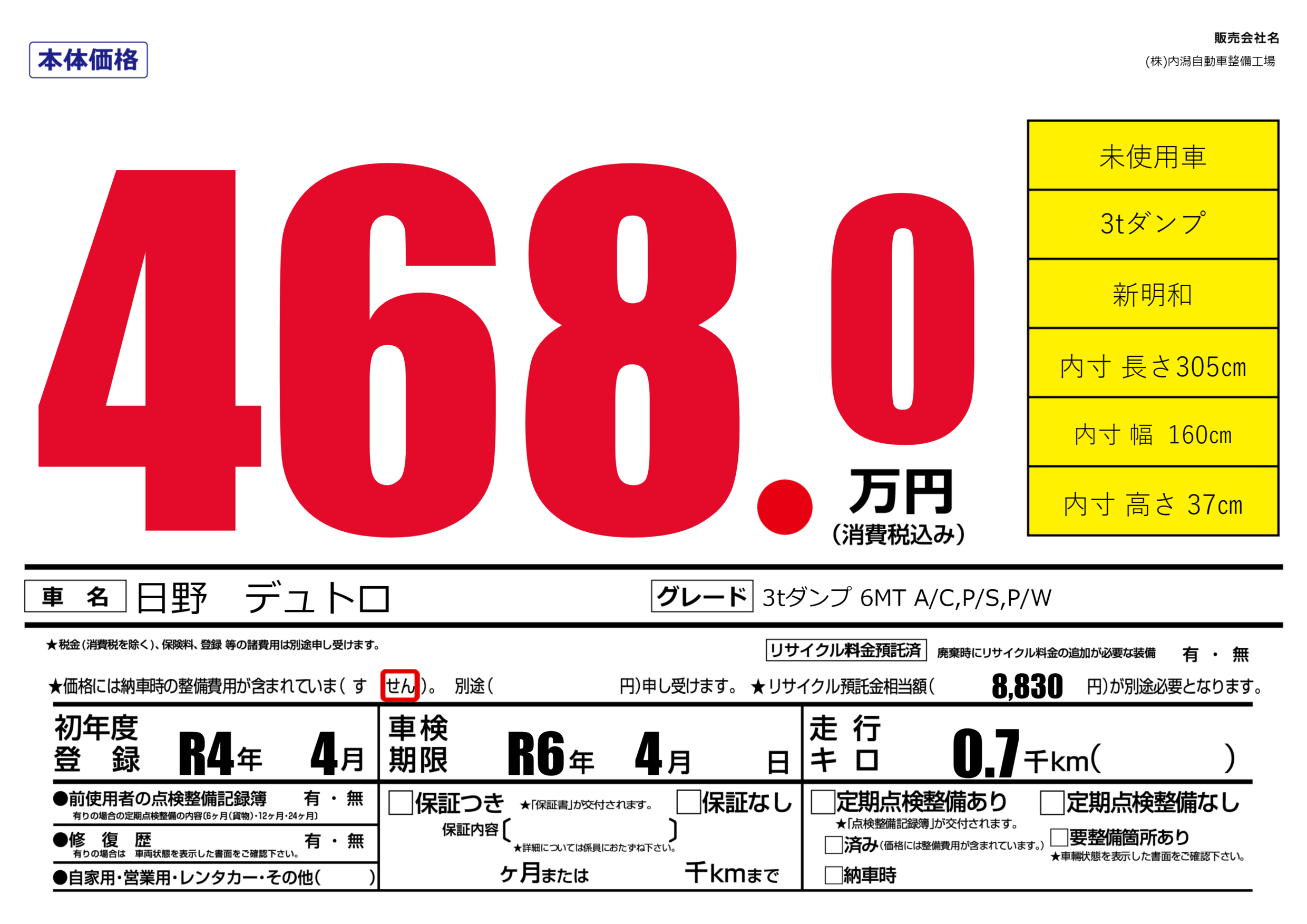 | 車名 | 日野 デュトロ | グレード ミッション 排気量 |