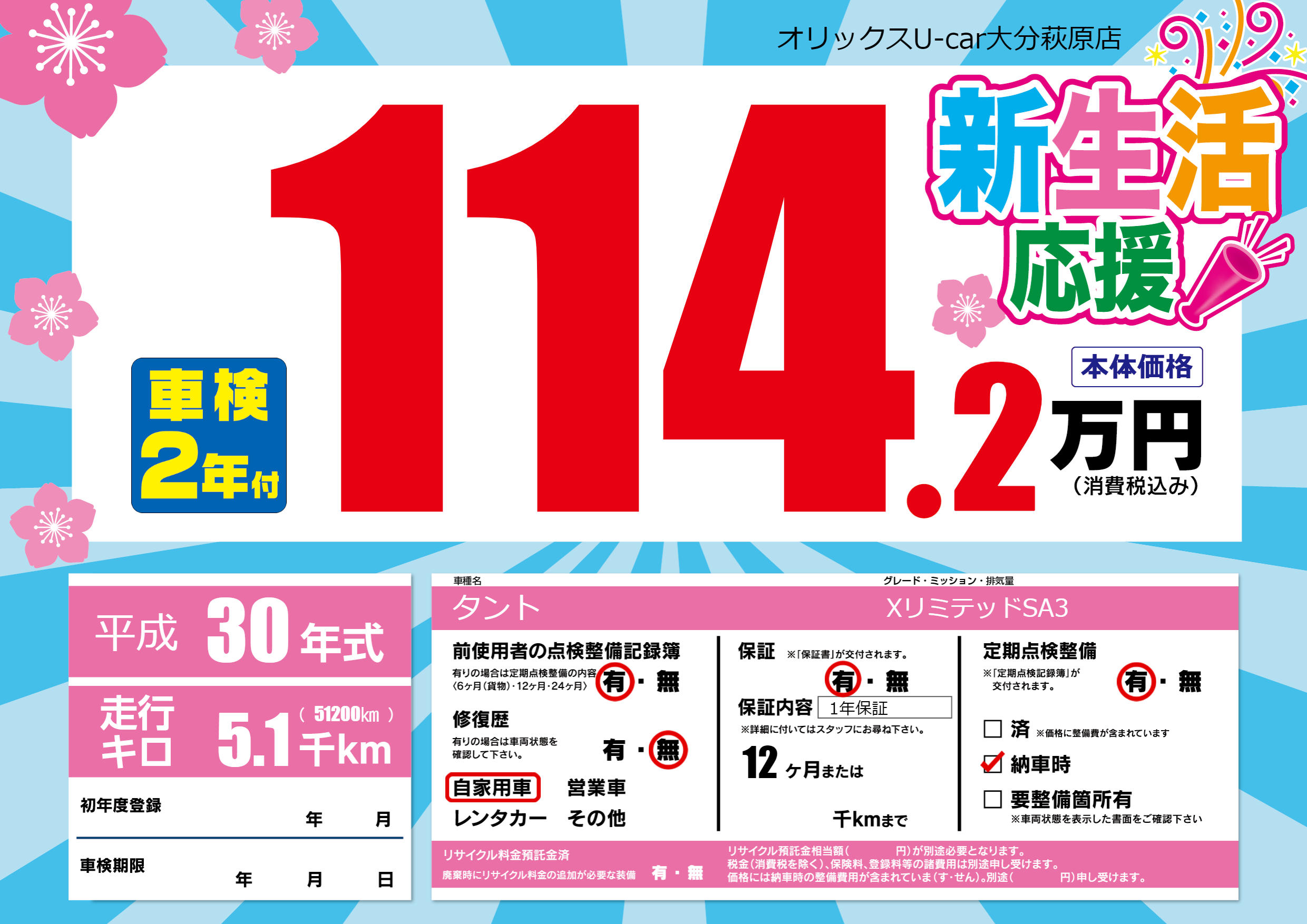 保証付き 保証内容(1年保証) 12ヶ月または()千kmまで |