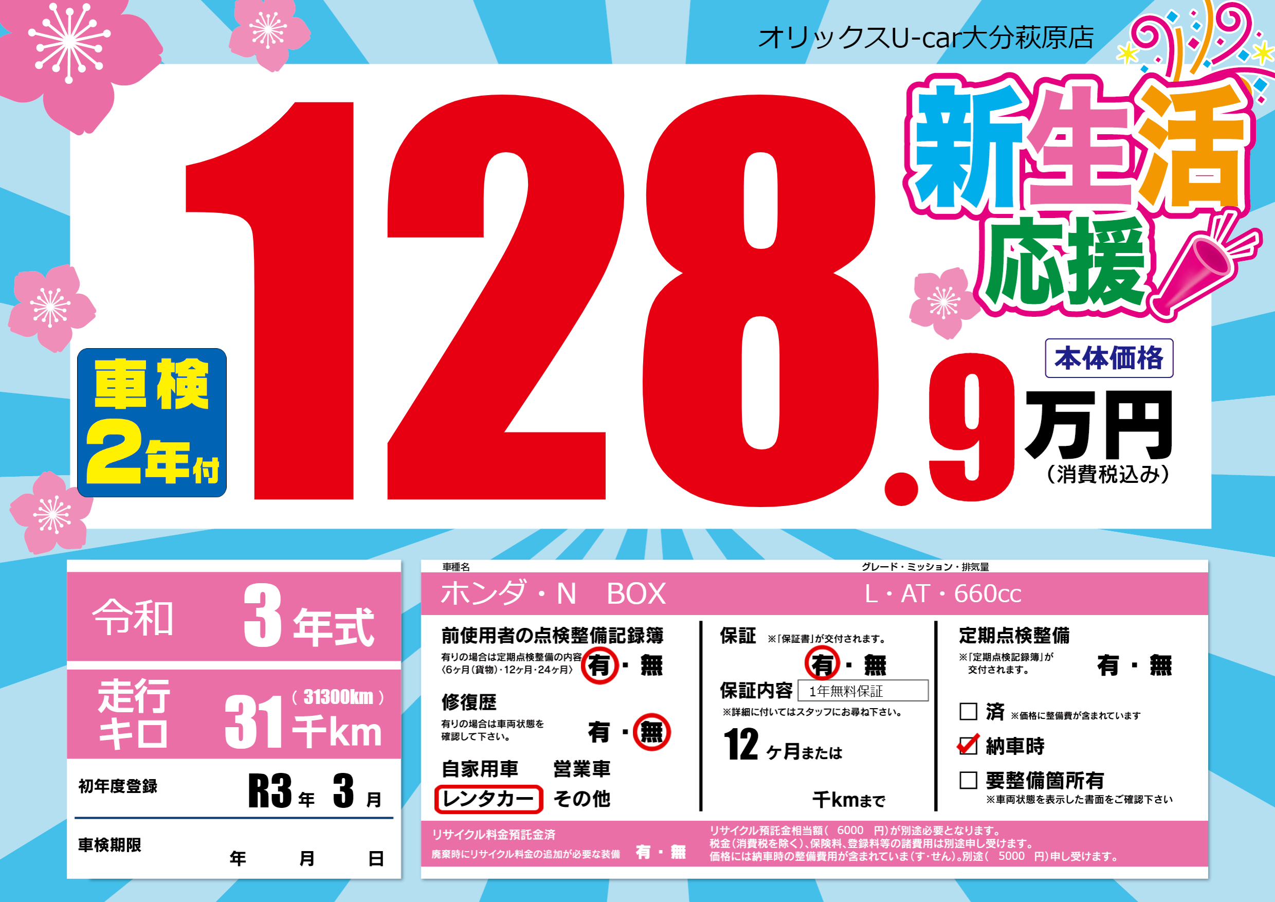 | 走行キロ | 3.1万km | 初年度登録 | R3年3月 |