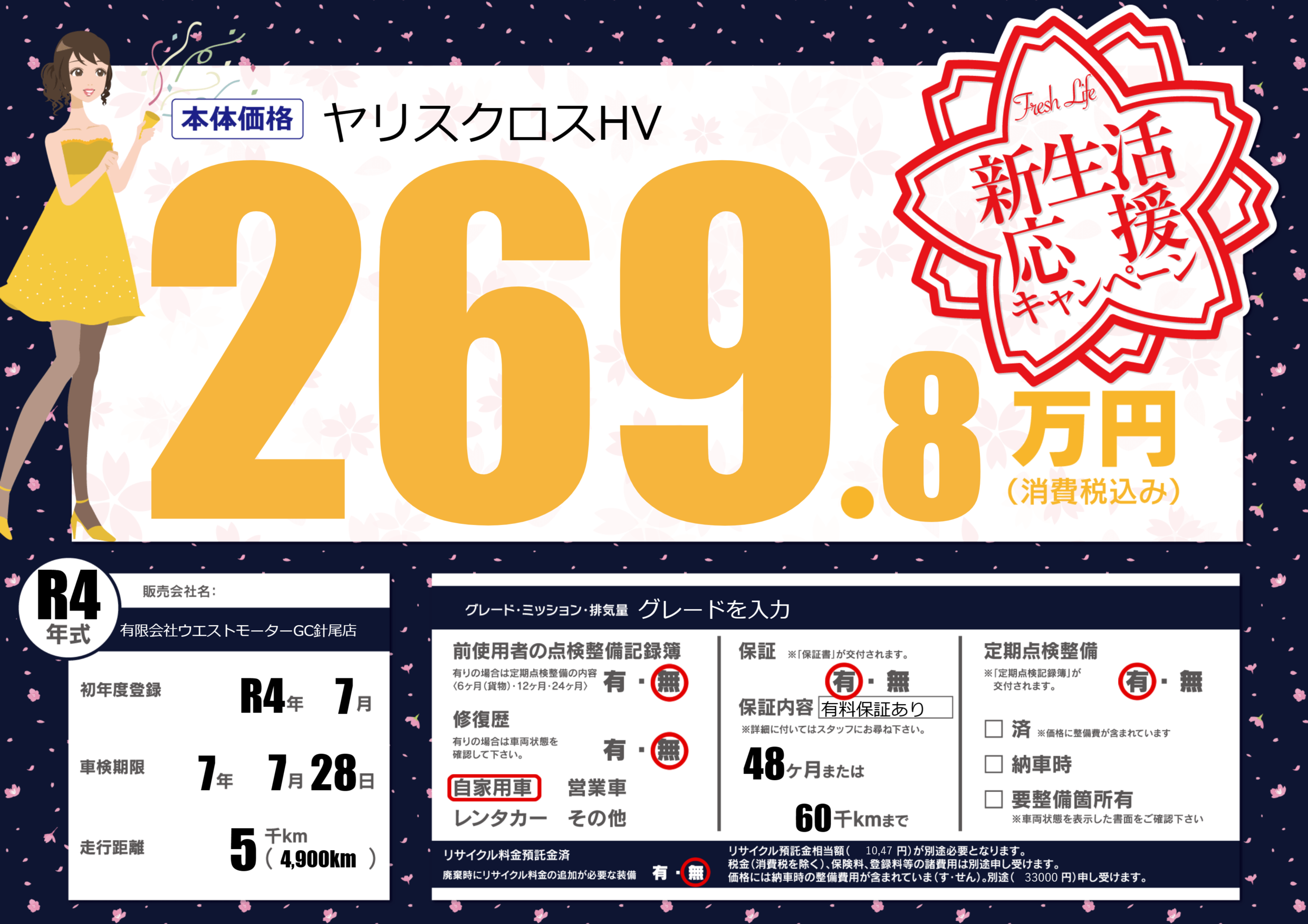 | 車名 | ヤリスクロスHV | グレード ミッション 排気量 |