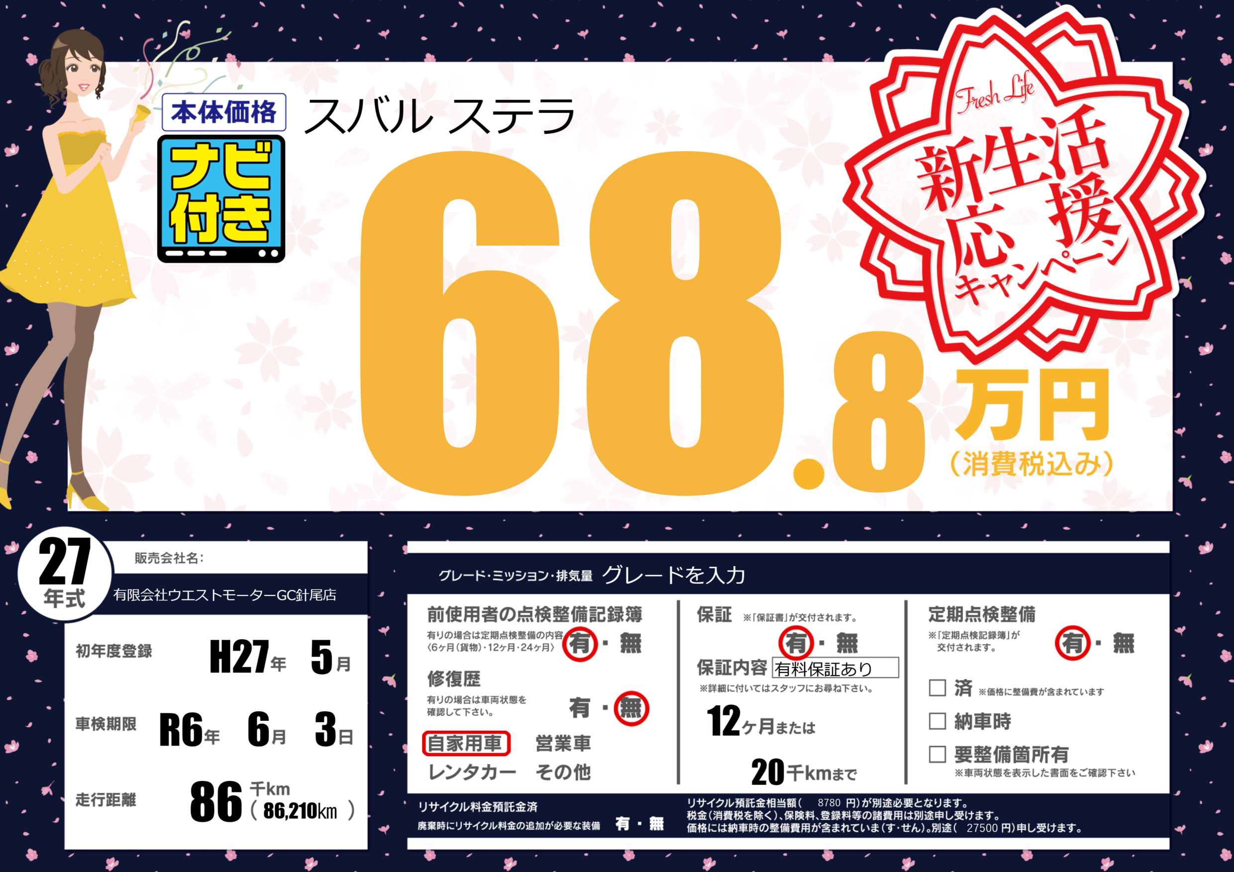 | 車名 | スバル ステラ | グレード ミッション 排気量 |