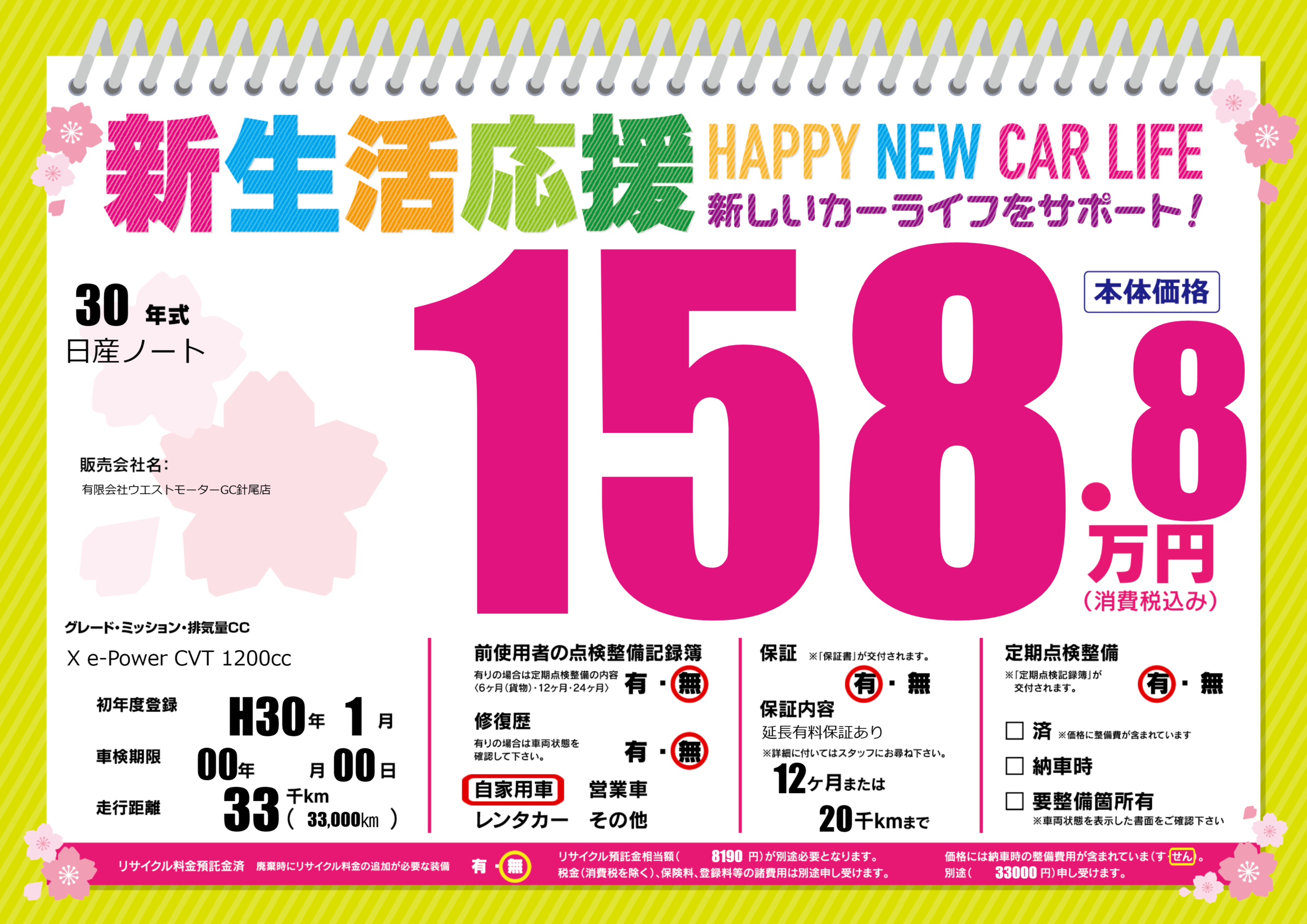 | 車名 | 日産ノート | グレード ミッション 排気量 |
