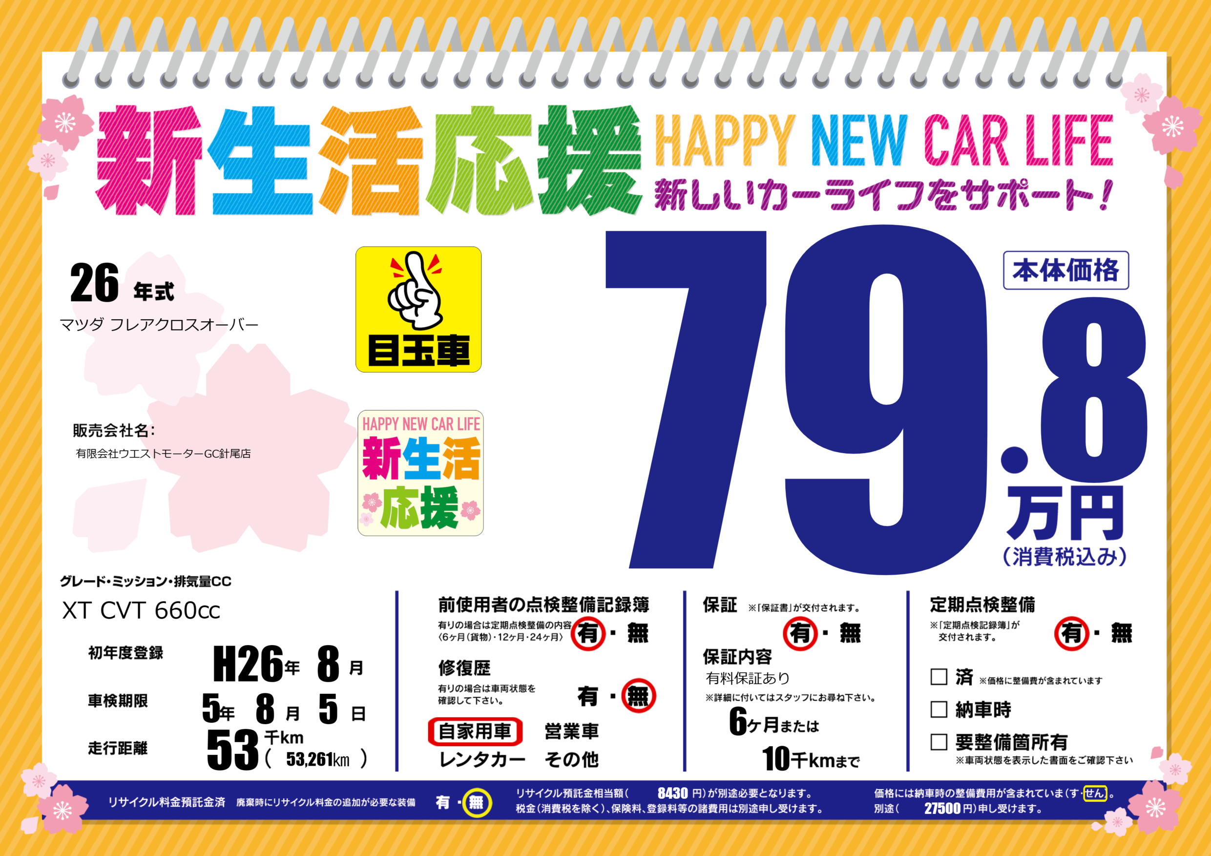 | 車名 | マツダ フレアクロスオーバー | グレード ミッション 排気量 |
