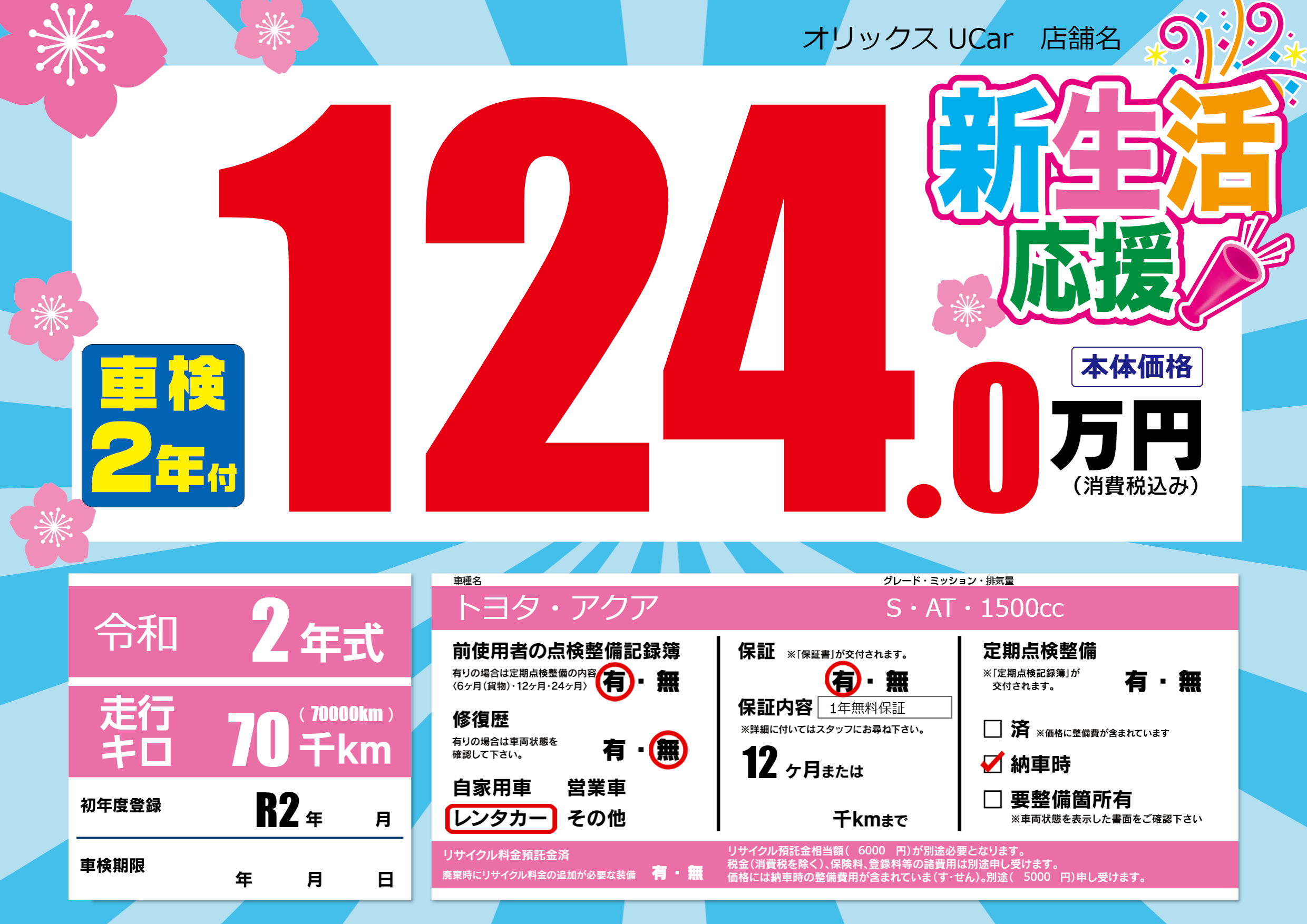 保証付き 保証内容(1年無料保証) 12ヶ月または()千kmまで |
