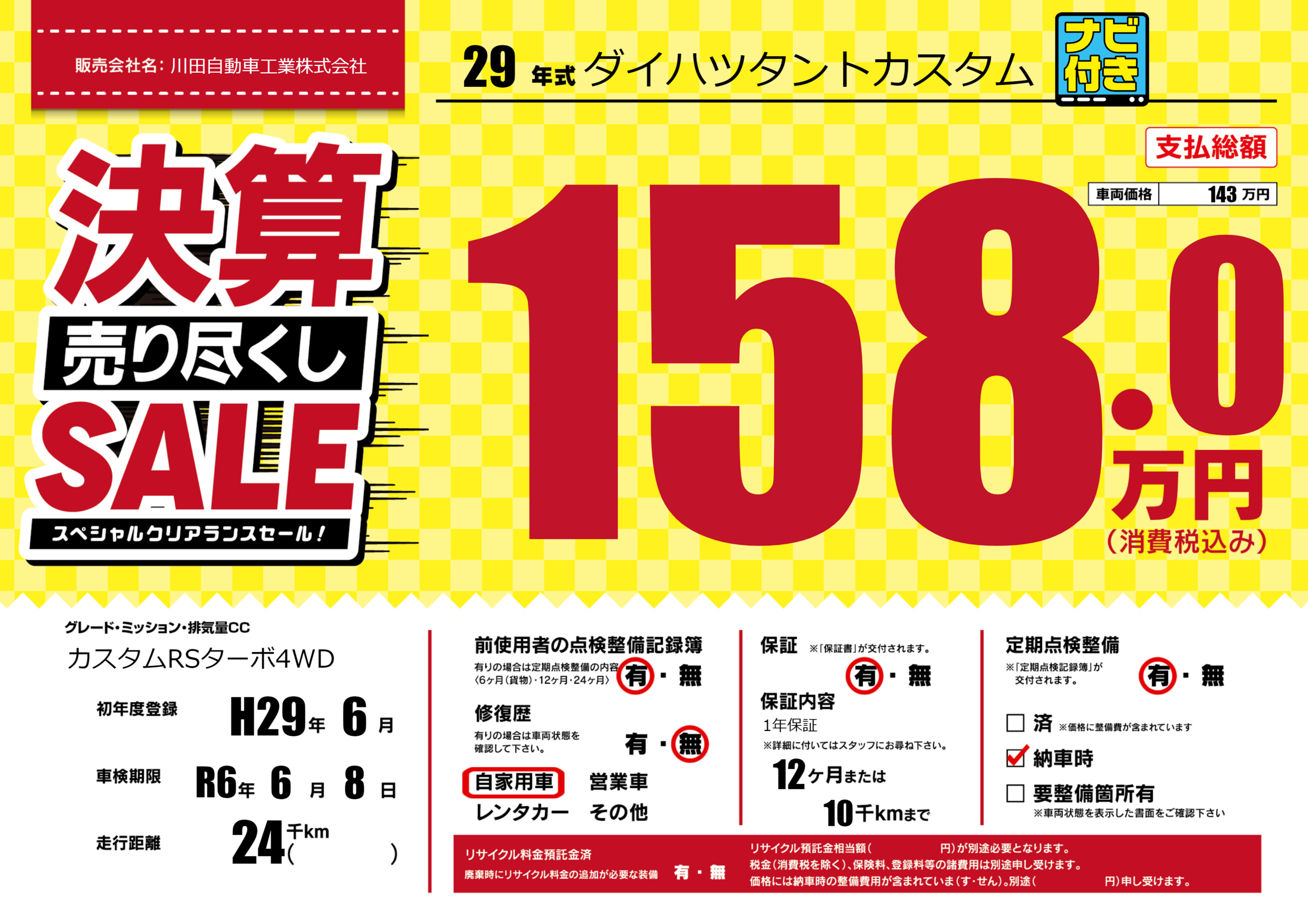 | 定期点検整備 | 定期点検整備あり 納車時あり | ||