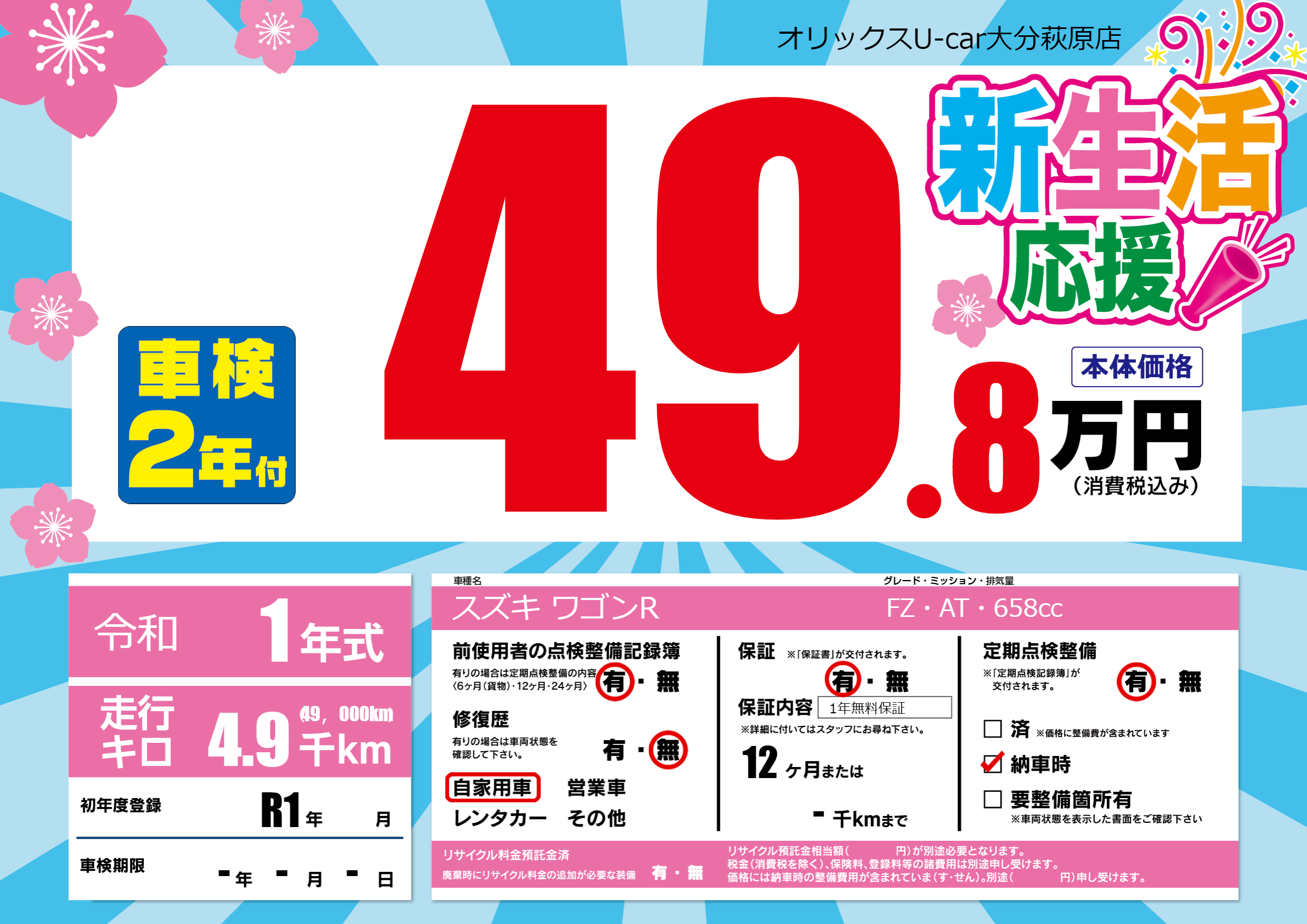 | 車名 | スズキ ワゴンR | グレード ミッション 排気量 |
