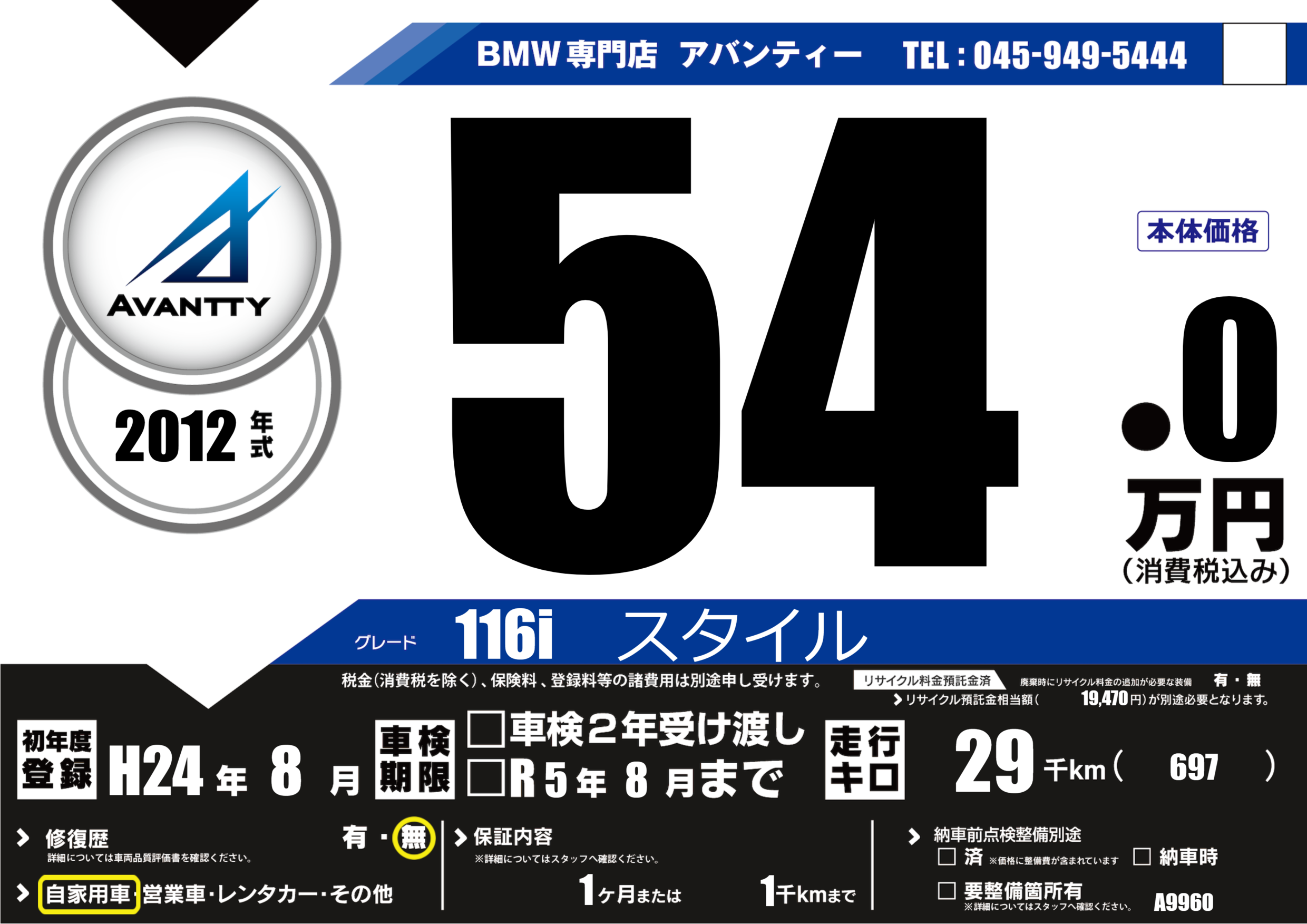 | 走行キロ | 2.9万km | 初年度登録 | H24年8月 |