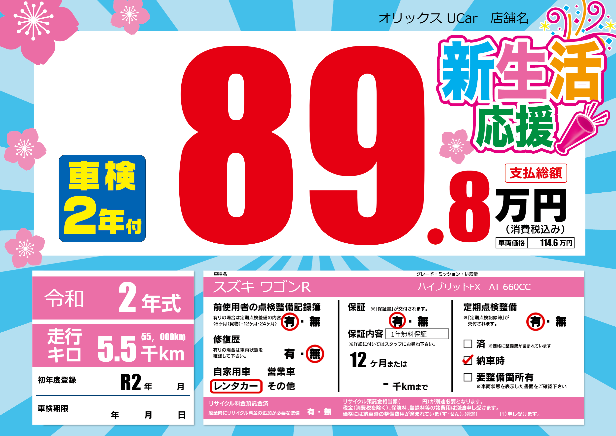 | 車名 | スズキ ワゴンR | グレード ミッション 排気量 |