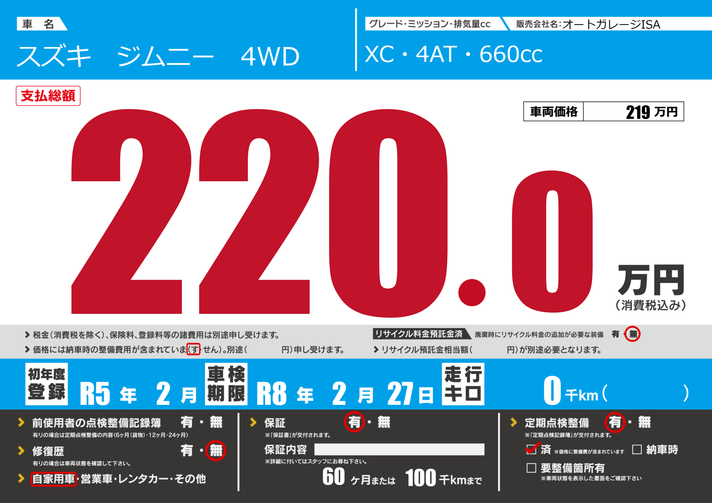 | 定期点検整備 | 定期点検整備あり 定期点検整備済み | ||