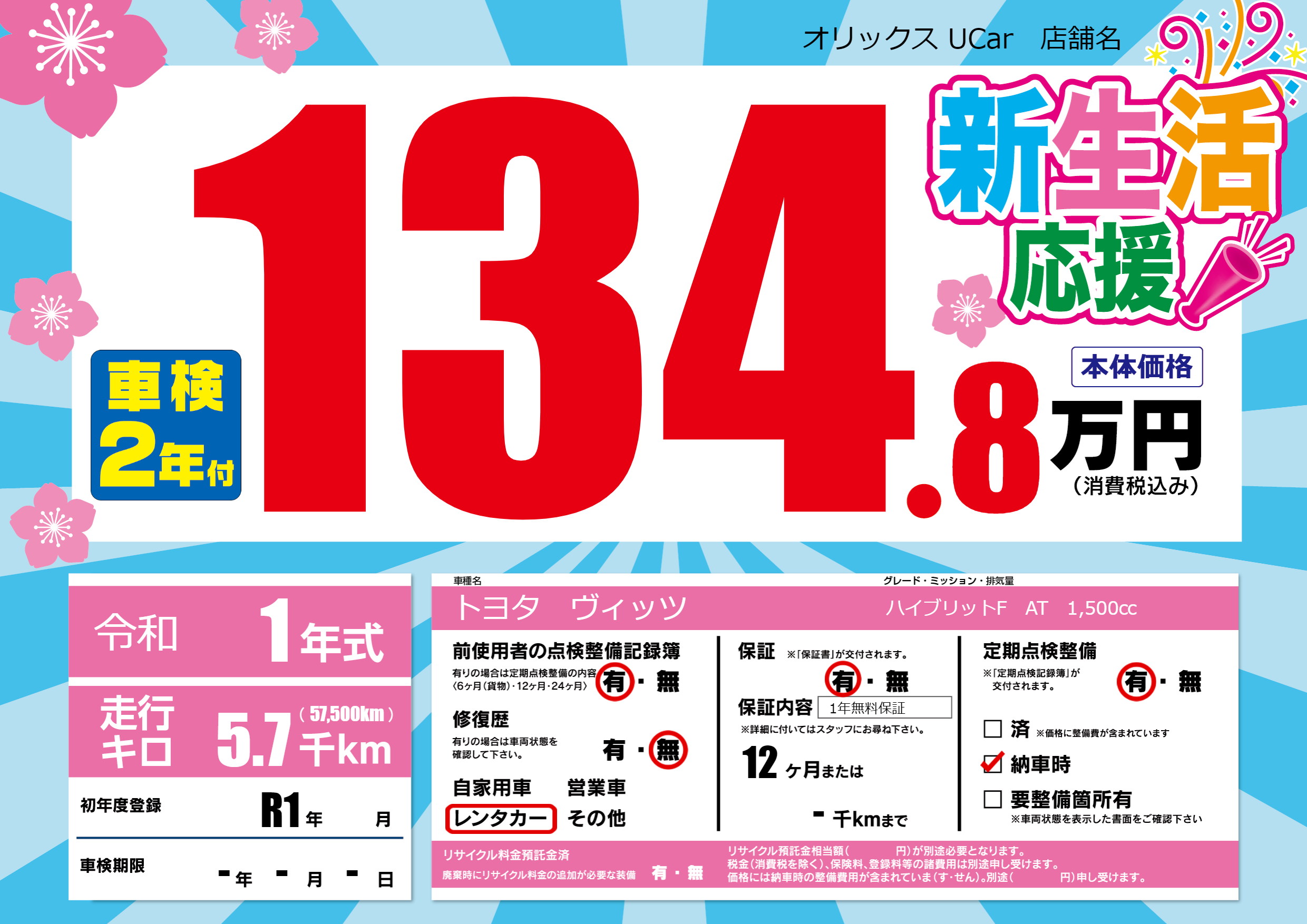 | 車名 | トヨタ ヴィッツ | グレード ミッション 排気量 |