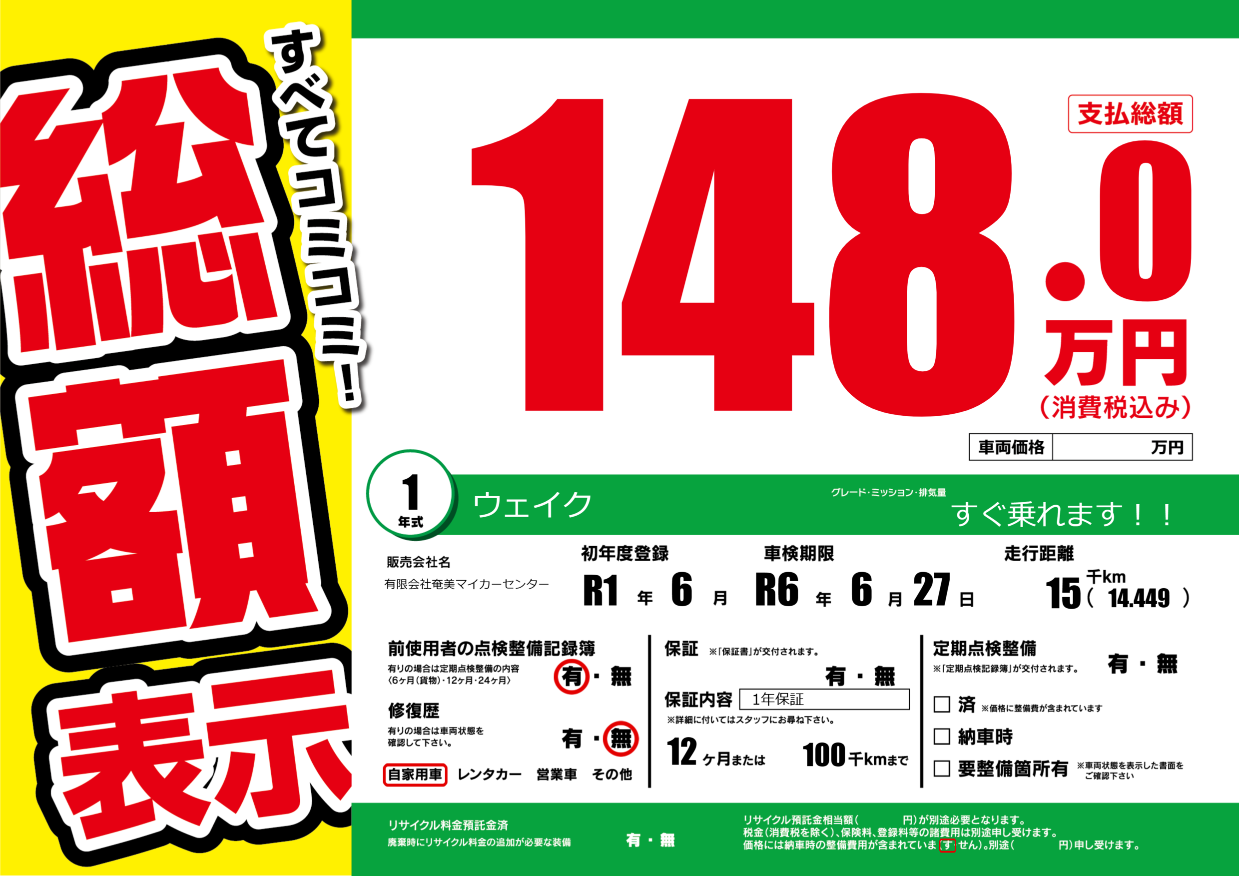 あり | 車検制限 | R6年6月27月 |