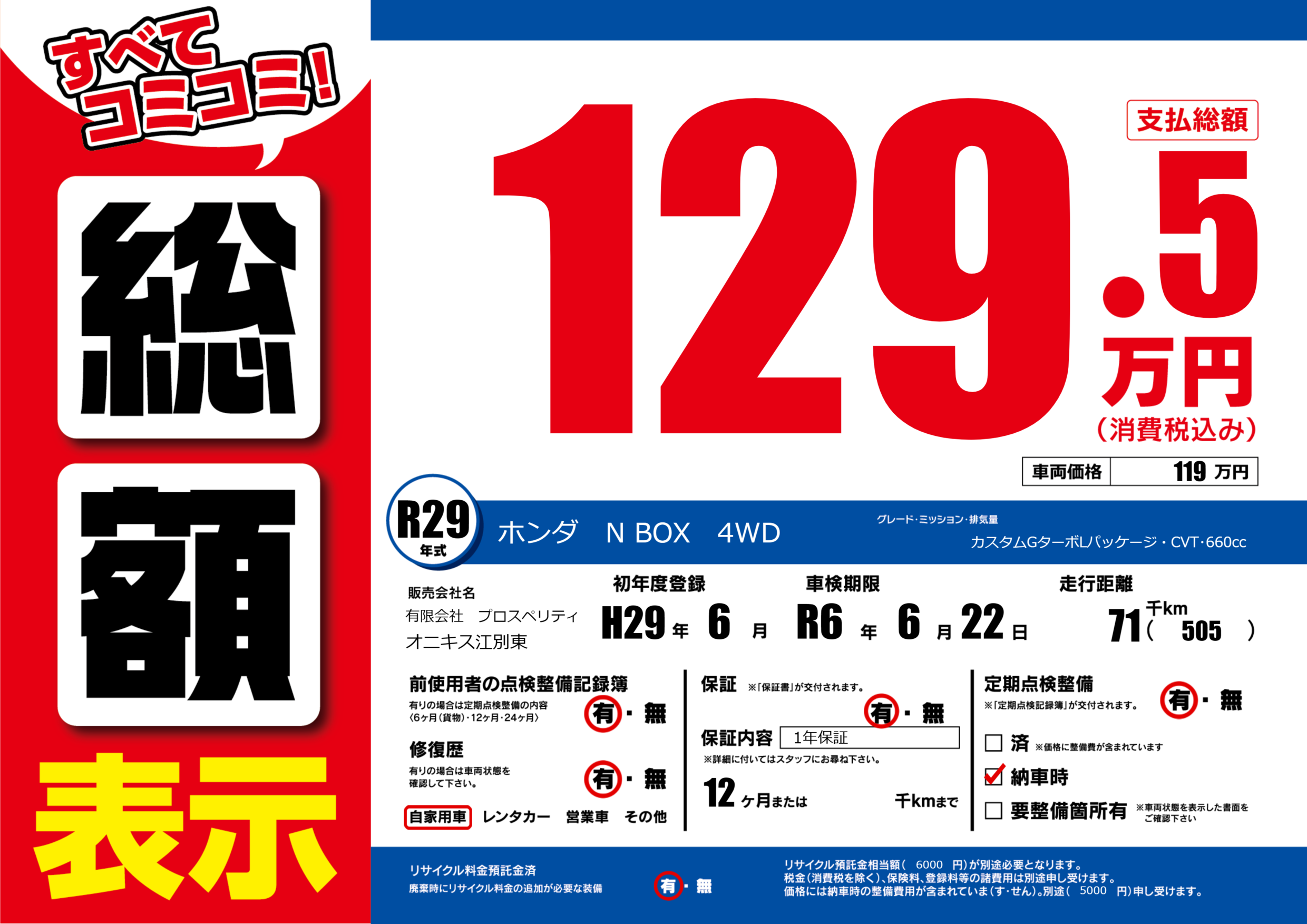 | 定期点検整備 | 定期点検整備あり 納車時あり | ||