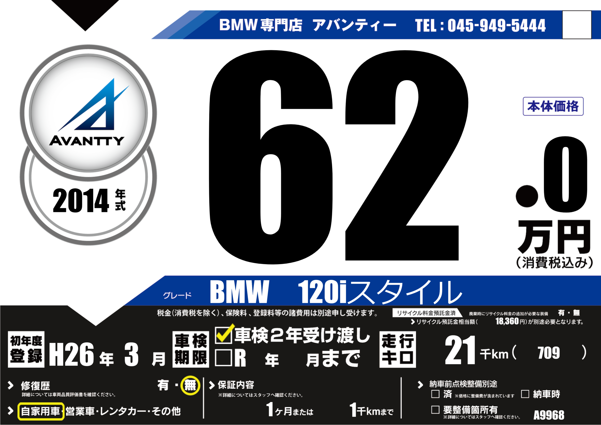 | 走行キロ | 2.1万km | 初年度登録 | H26年3月 |