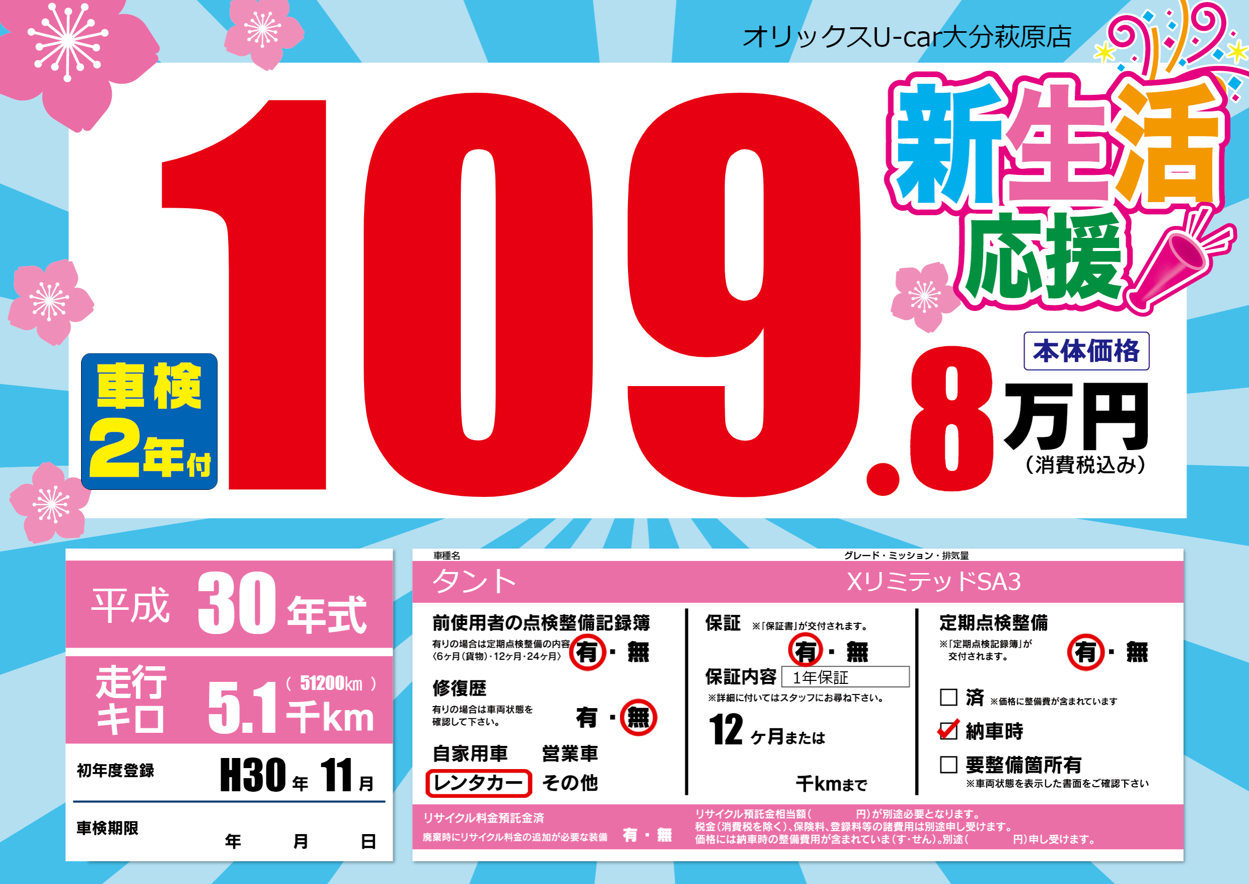 | 走行キロ | 0.5万km | 初年度登録 | H30年11月 |