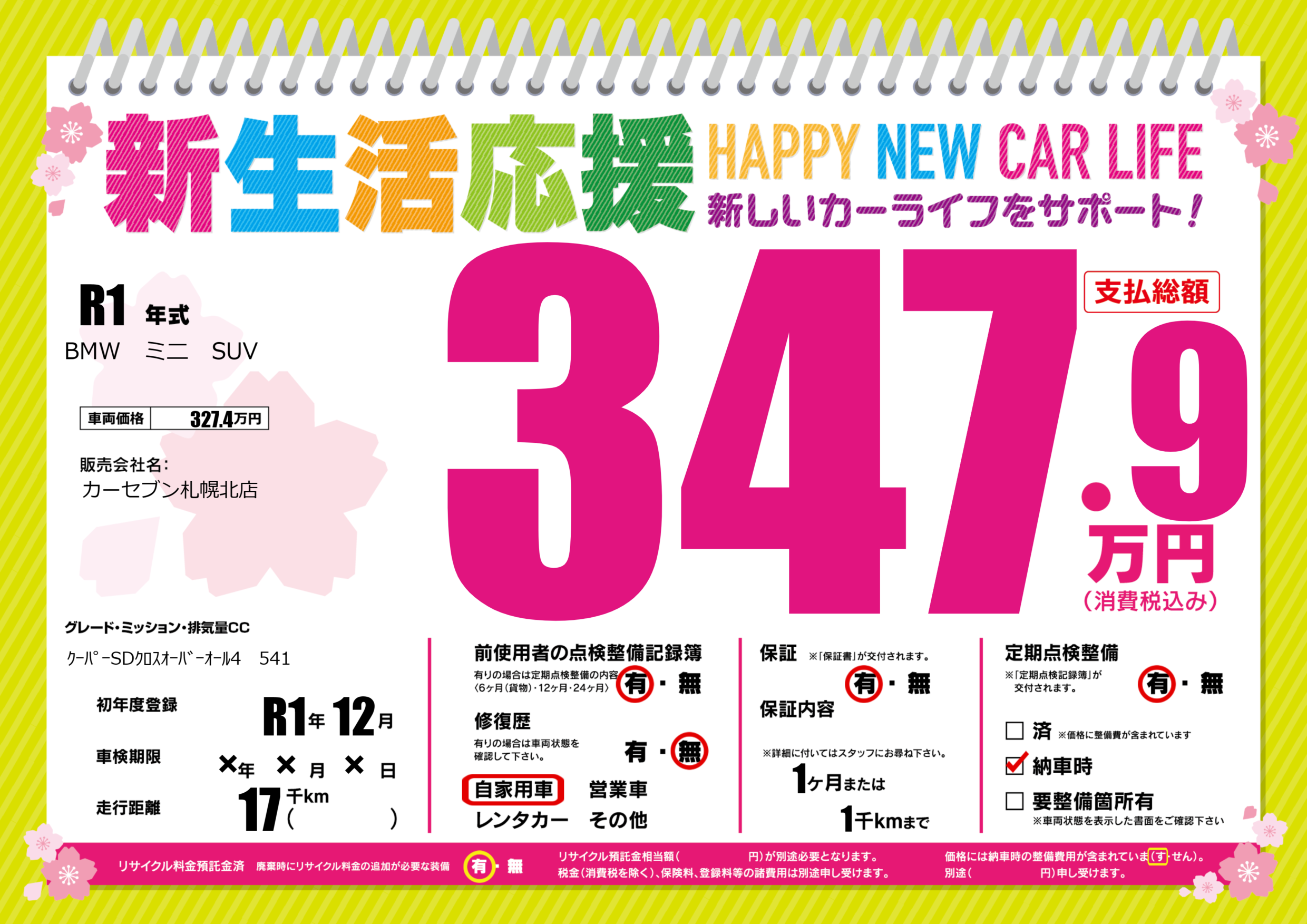 | 定期点検整備 | 定期点検整備あり 納車時あり | ||