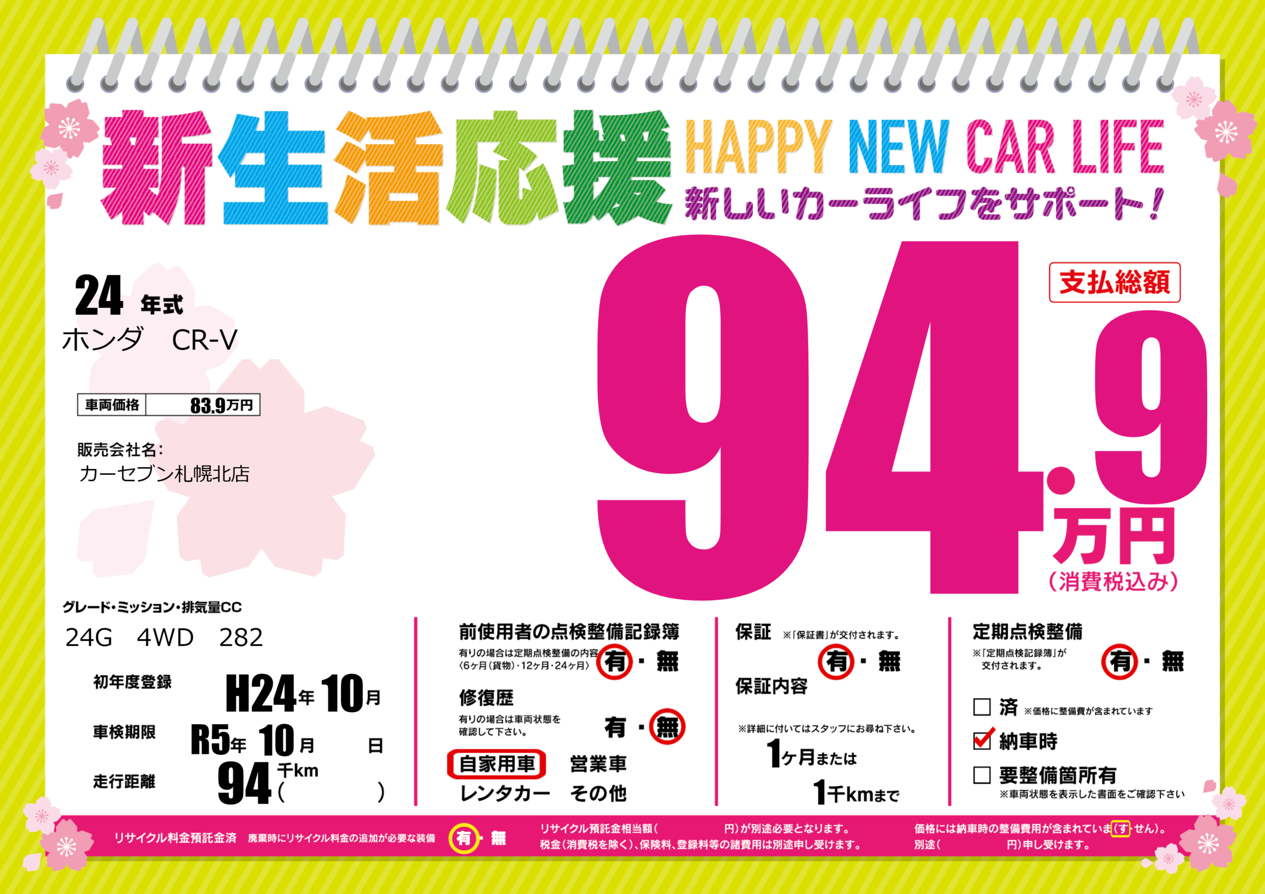 | 定期点検整備 | 定期点検整備あり 納車時あり | ||
