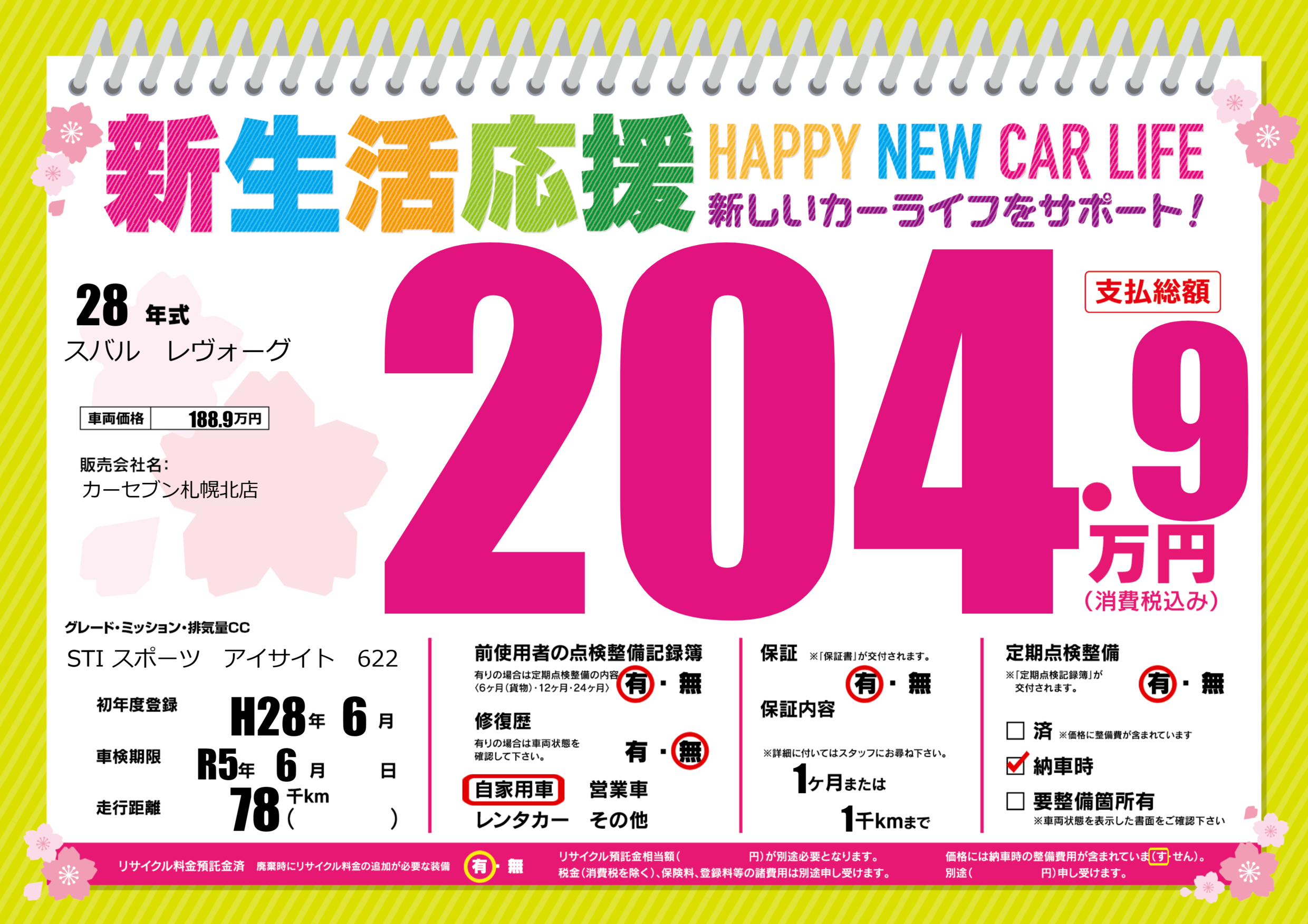 | 車名 | スバル レヴォーグ | グレード ミッション 排気量 |