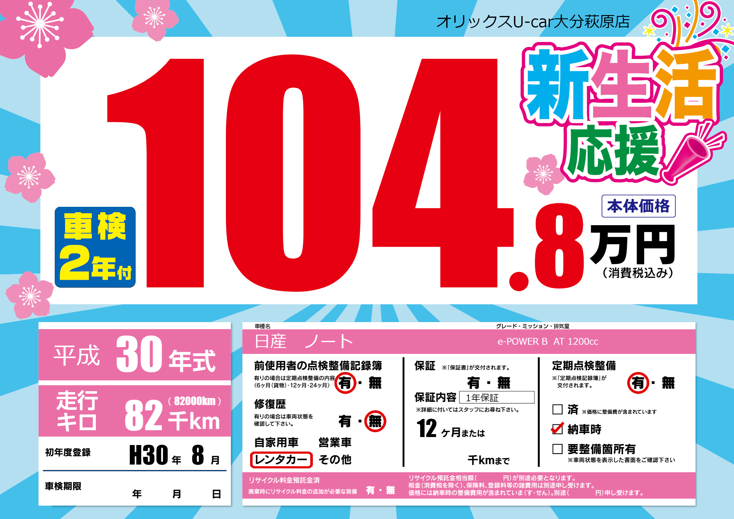 | 車名 | 日産 ノート | グレード ミッション 排気量 |