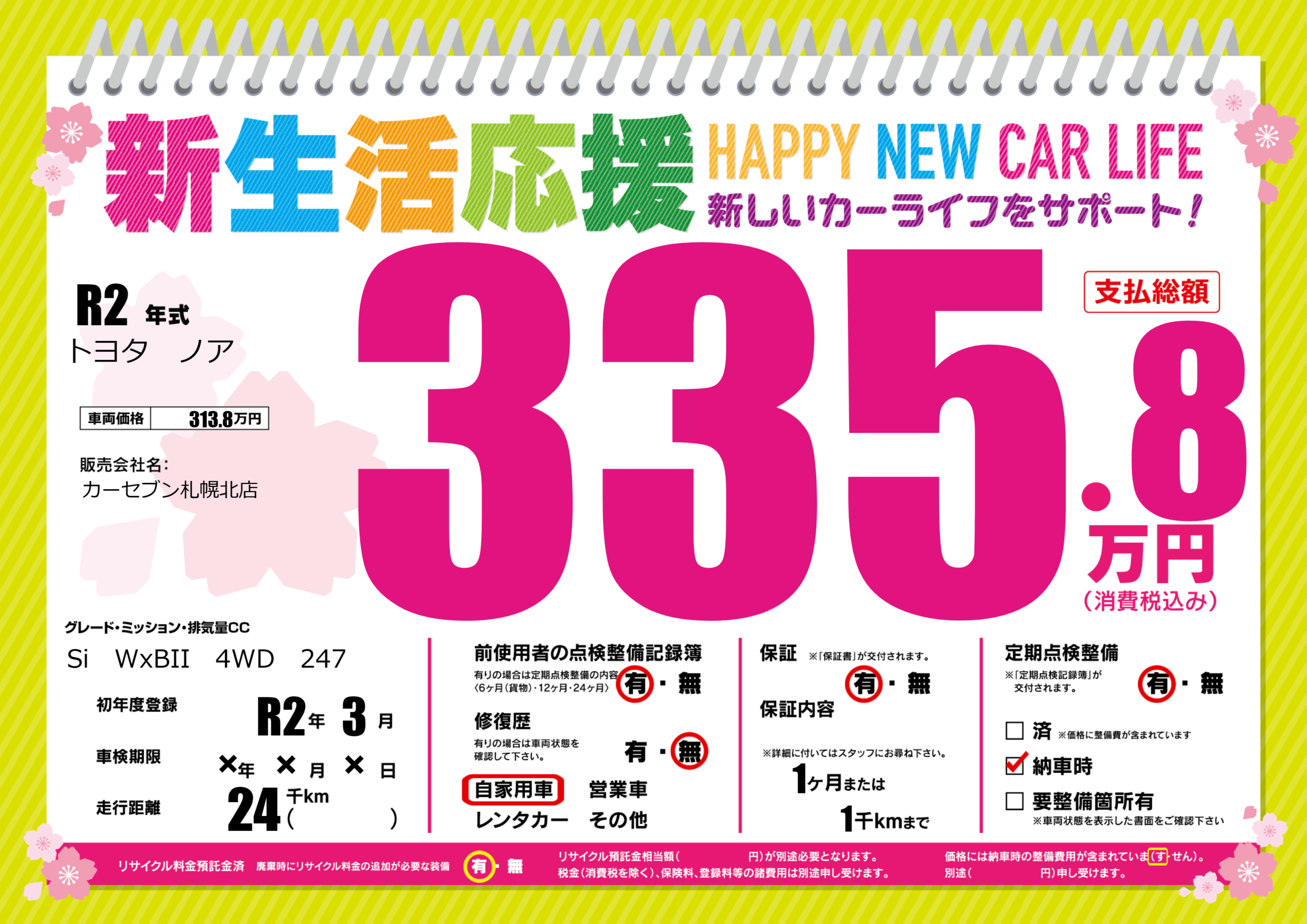 | 定期点検整備 | 定期点検整備あり 納車時あり | ||