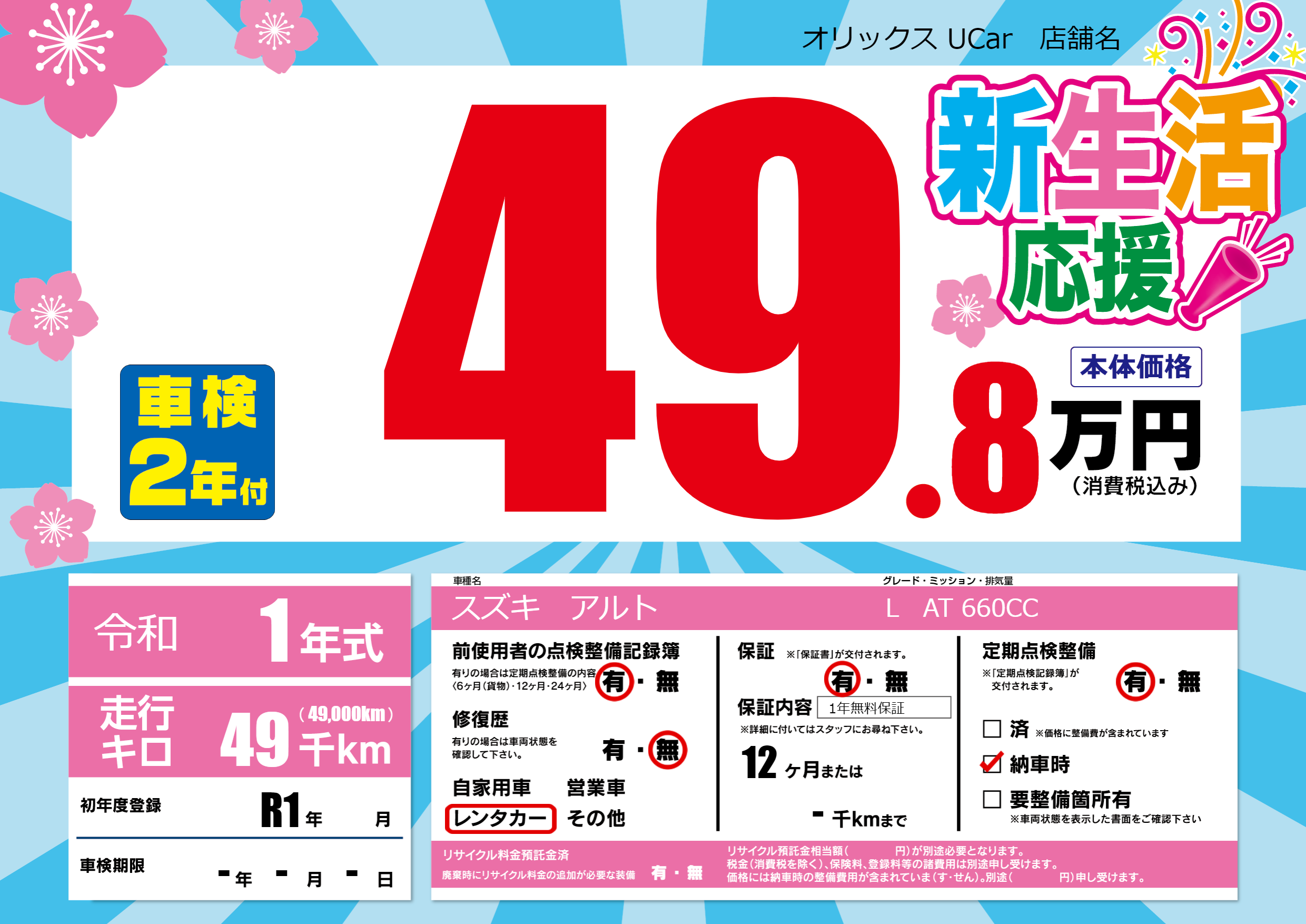 | 走行キロ | 4.9万km | 初年度登録 | R1年---月 |