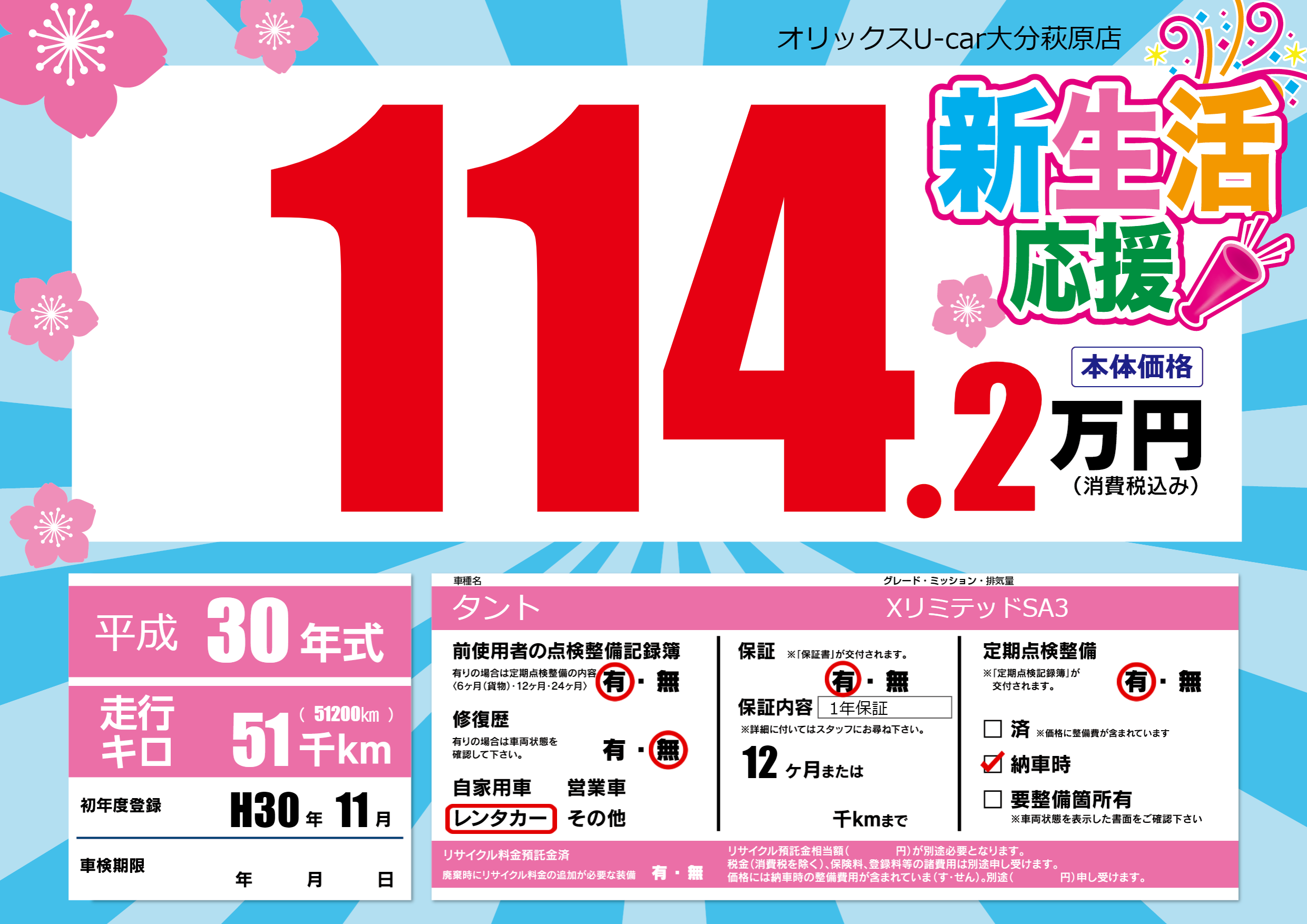| 走行キロ | 5.1万km | 初年度登録 | H30年11月 |