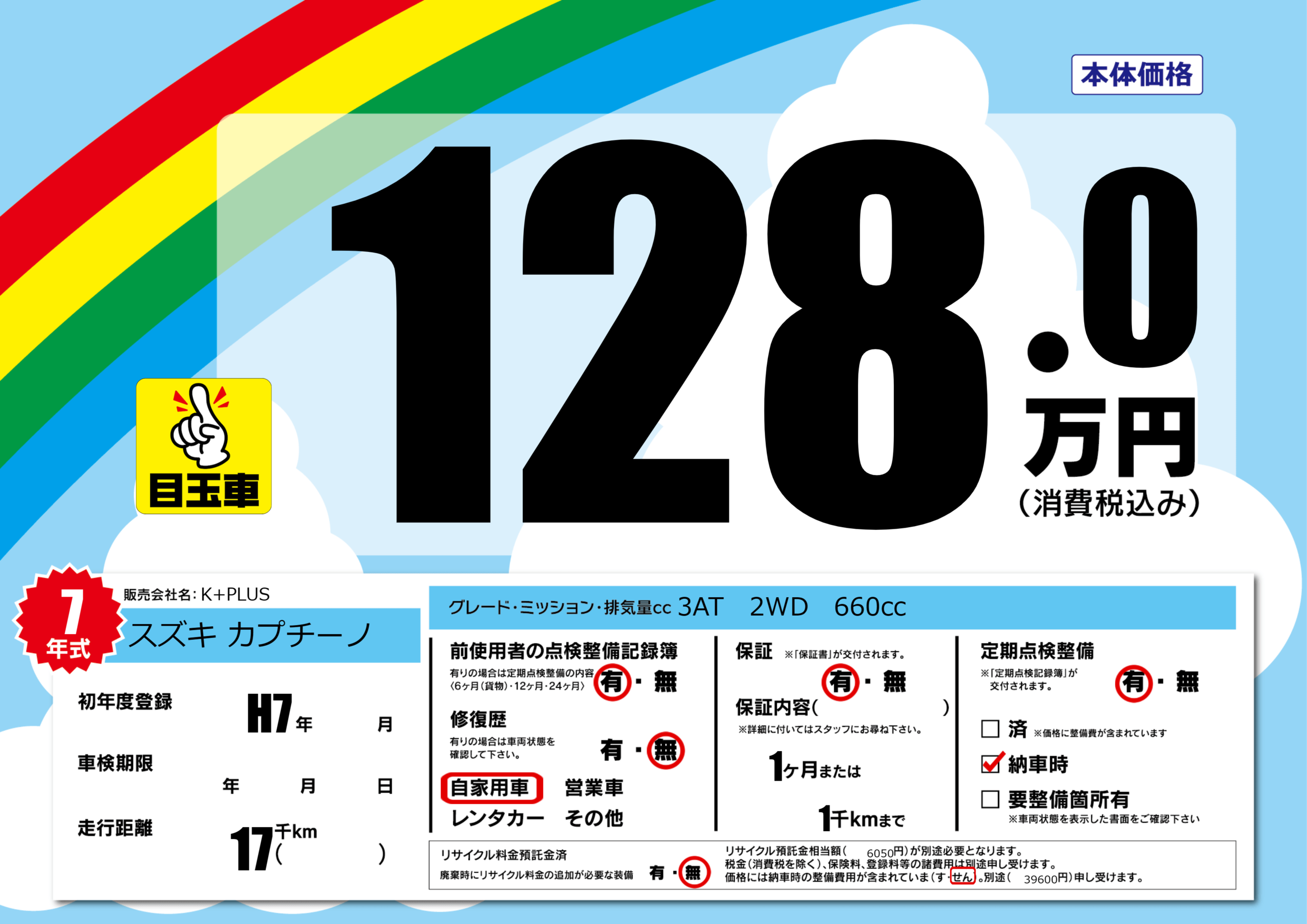 | 車名 | スズキ カプチーノ | グレード ミッション 排気量 |
