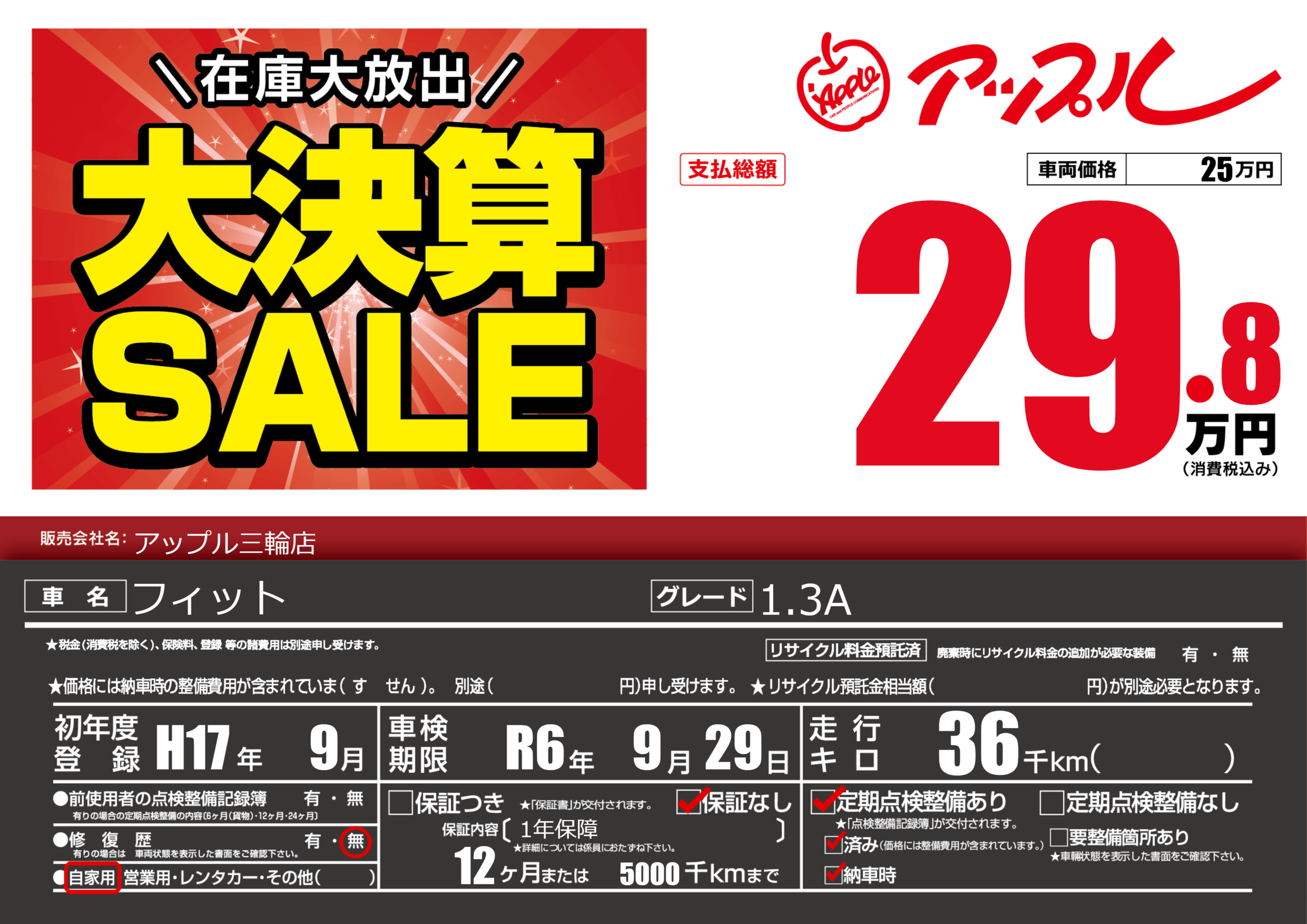 | 定期点検整備 | 定期点検整備あり 定期点検整備済み 納車時あり | ||