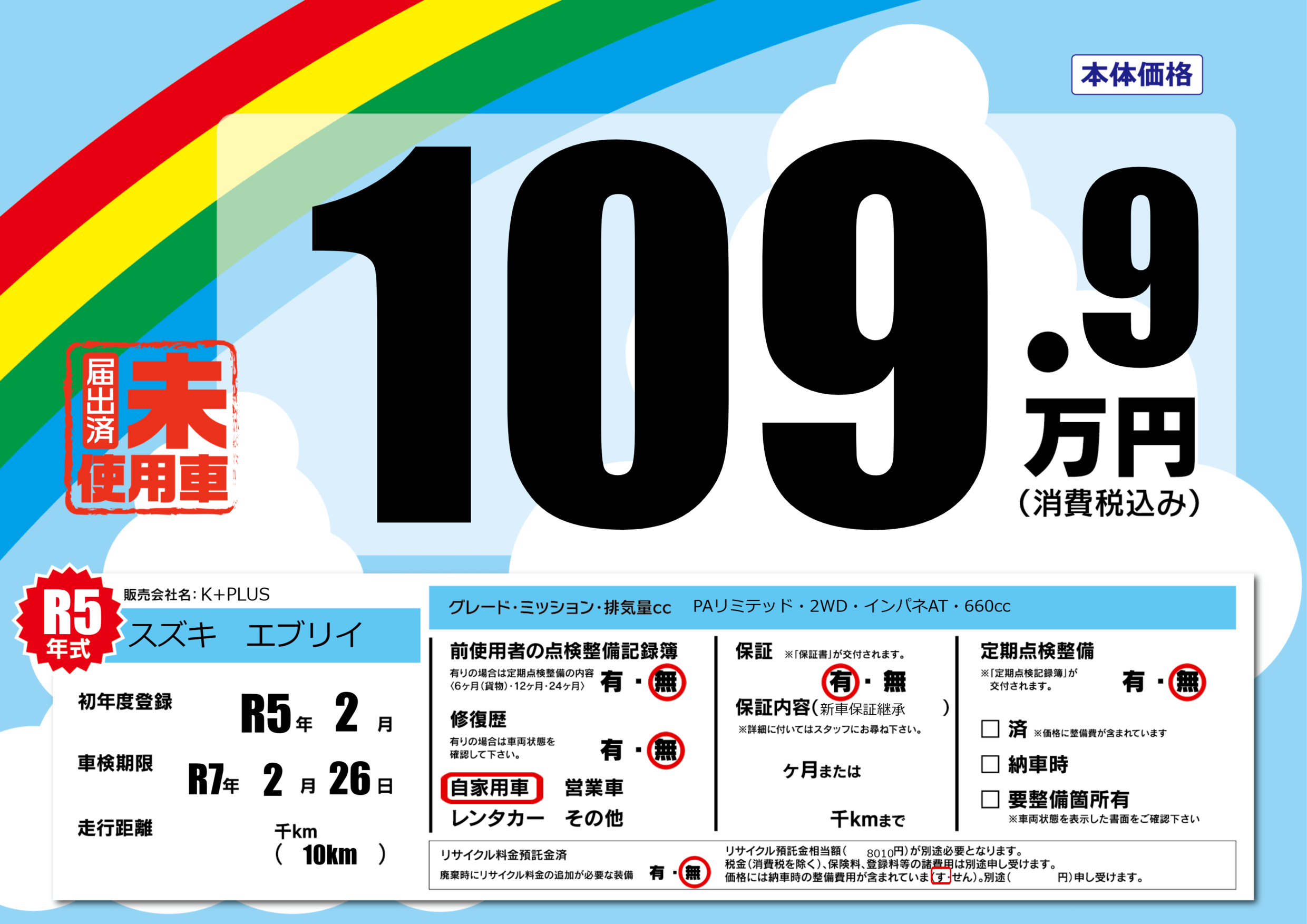 | 定期点検整備 | 定期点検整備なし | ||