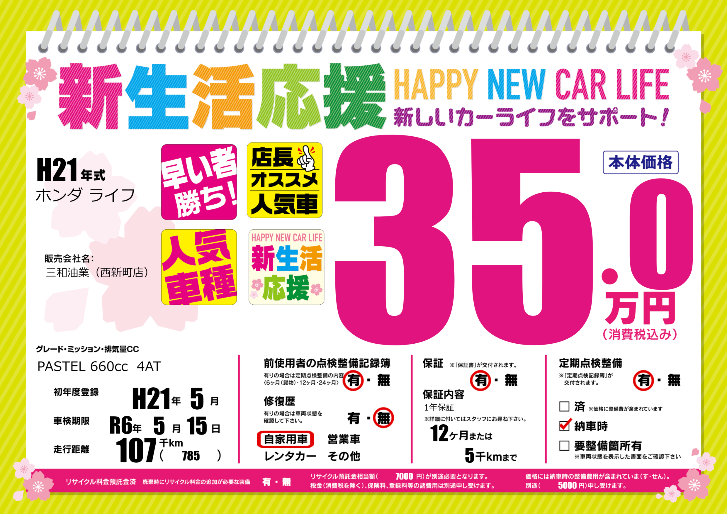 | 車名 | ホンダ ライフ | グレード ミッション 排気量 |