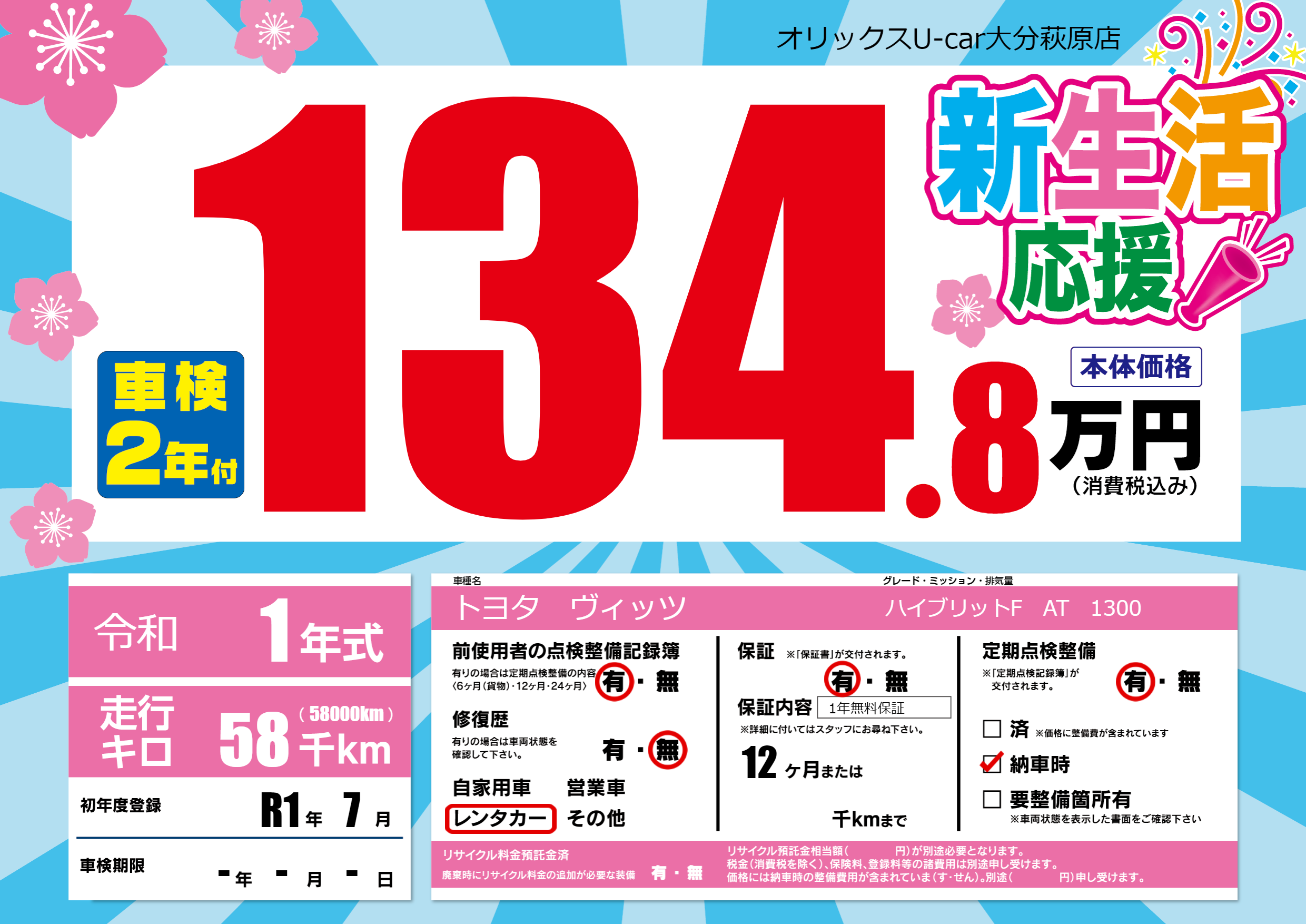 | 車名 | トヨタ ヴィッツ | グレード ミッション 排気量 |