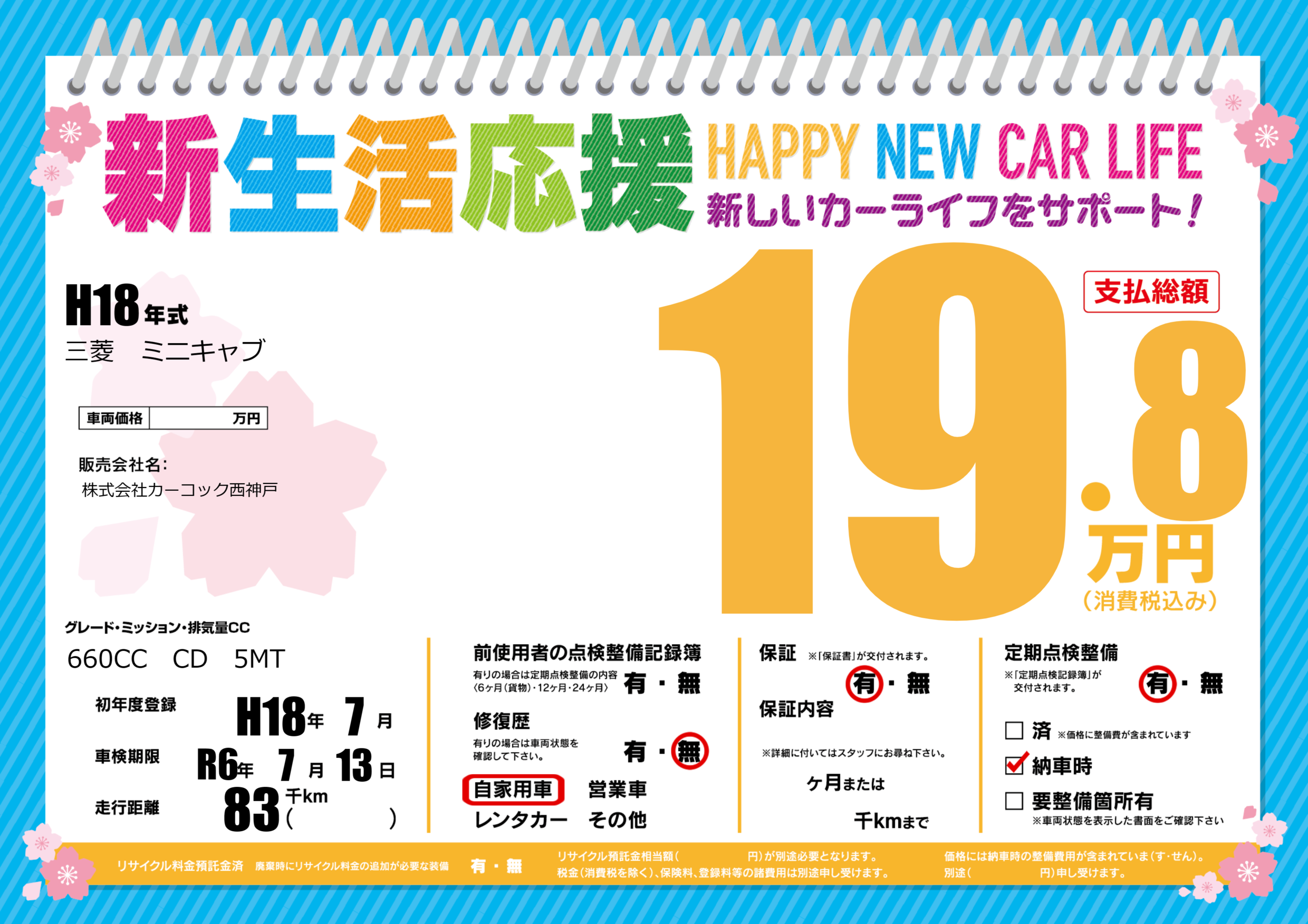 | 定期点検整備 | 定期点検整備あり 納車時あり | ||