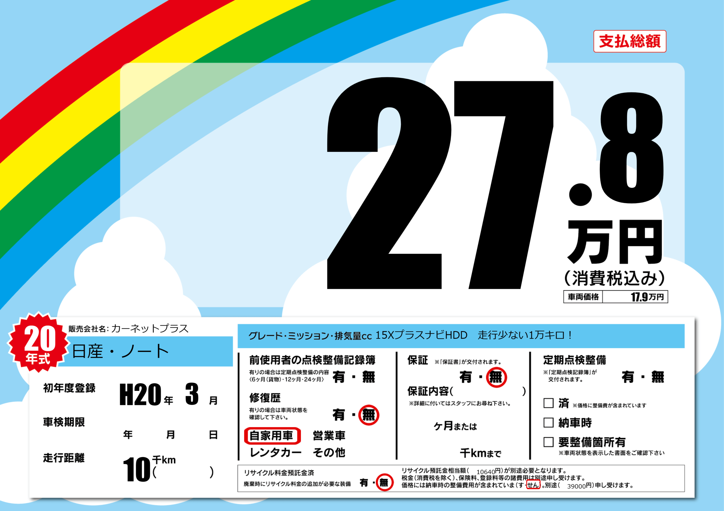 | 車名 | 日産・ノート | グレード ミッション 排気量 |