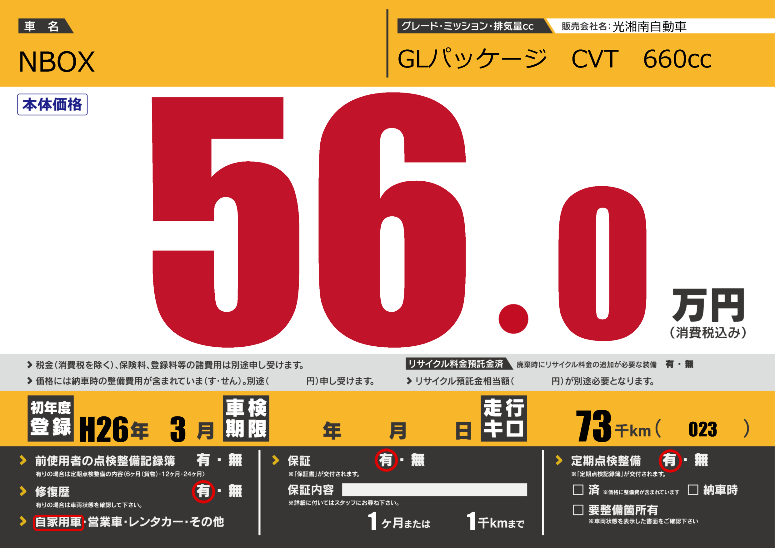 | 車名 | NBOX | グレード ミッション 排気量 |