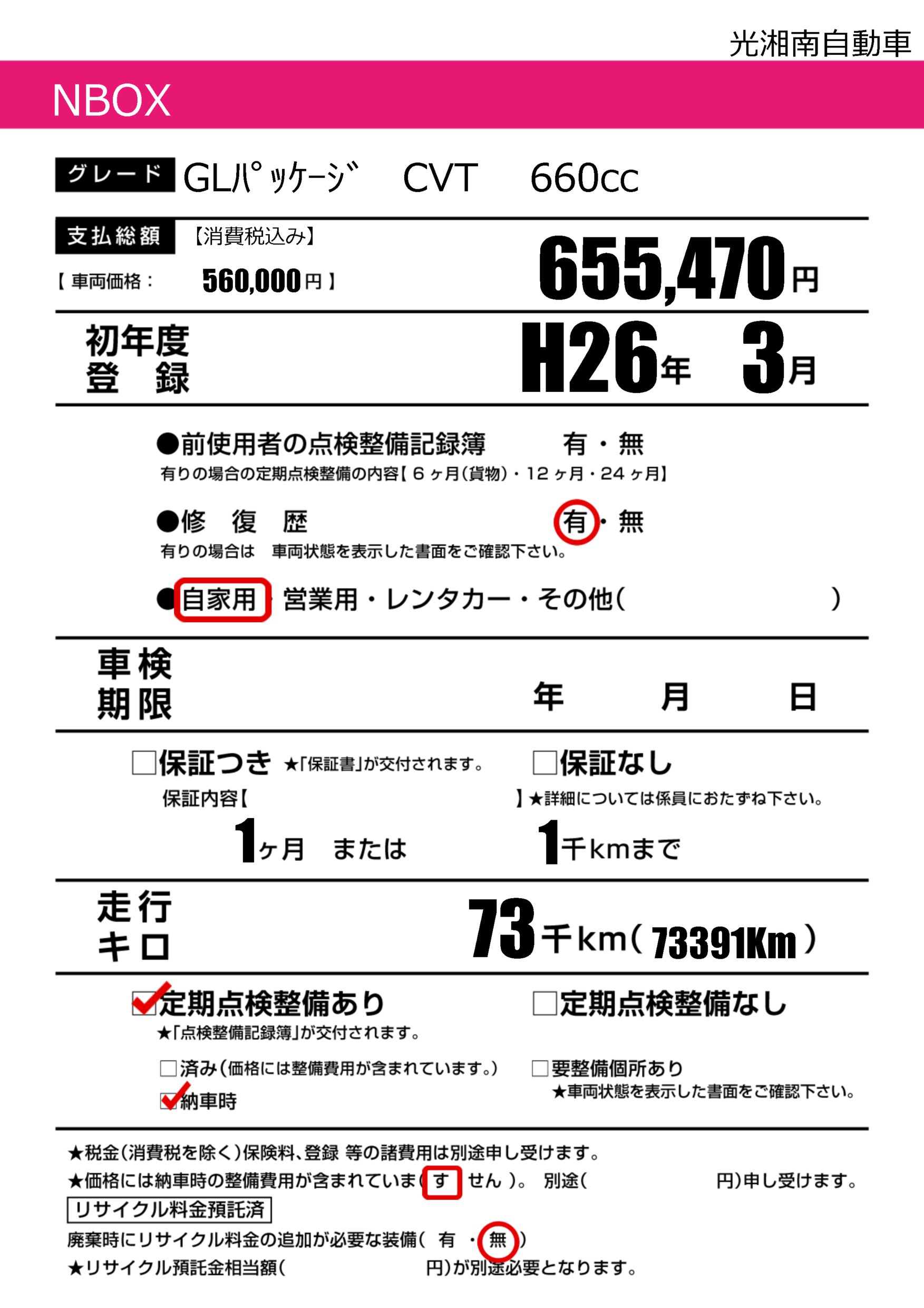| 車名 | NBOX | グレード ミッション 排気量 |