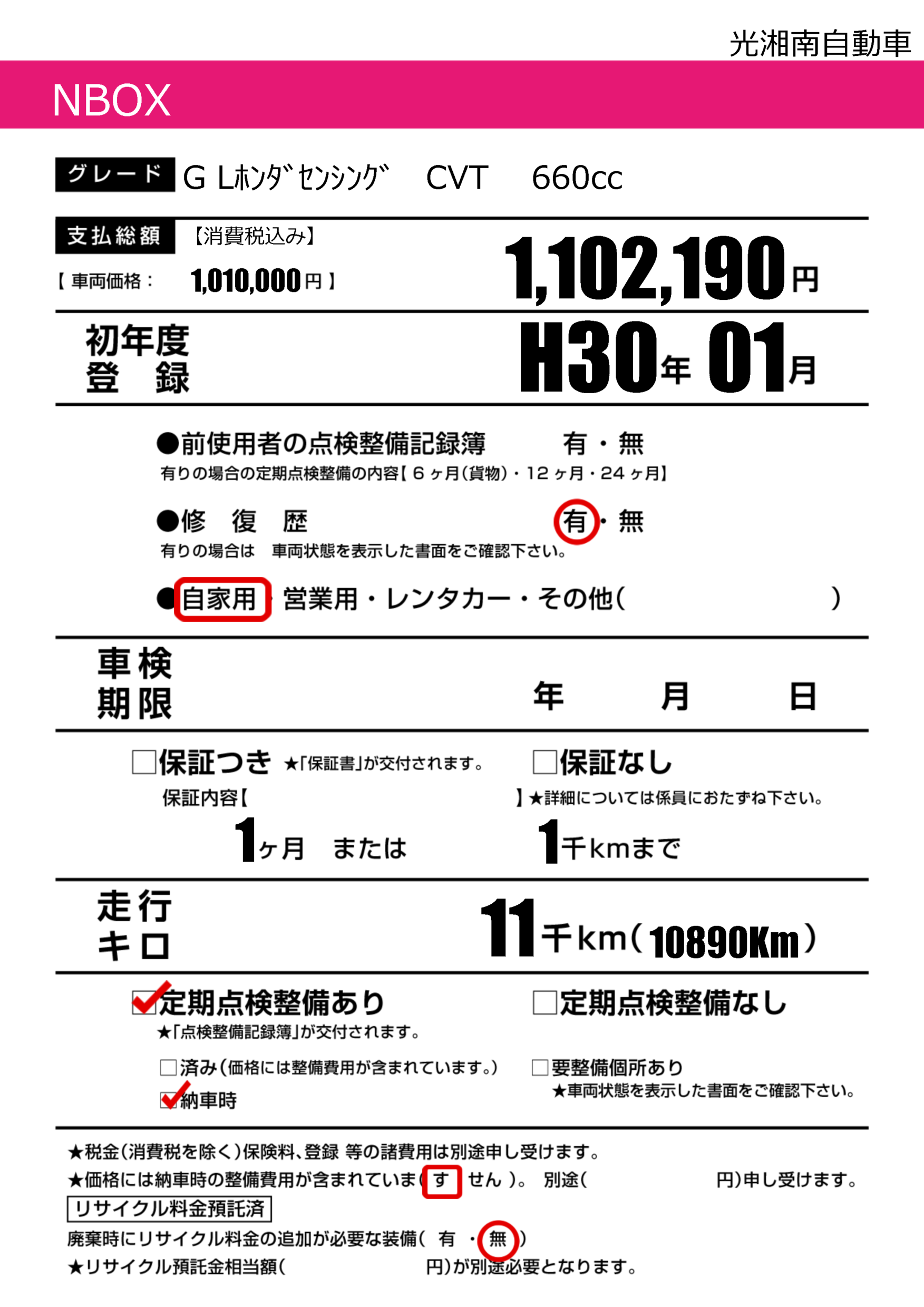 | 定期点検整備 | 定期点検整備あり 納車時あり | ||