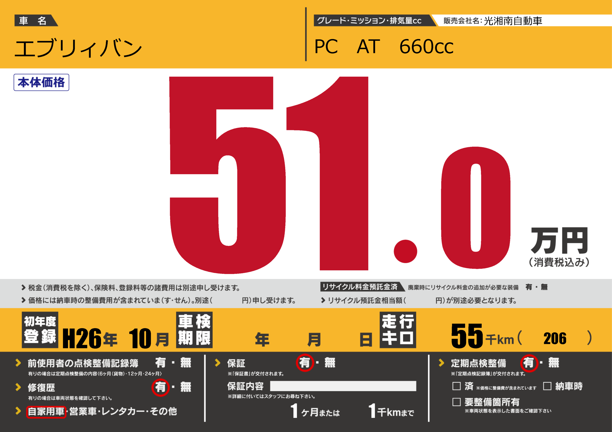 | 車名 | エブリィバン | グレード ミッション 排気量 |
