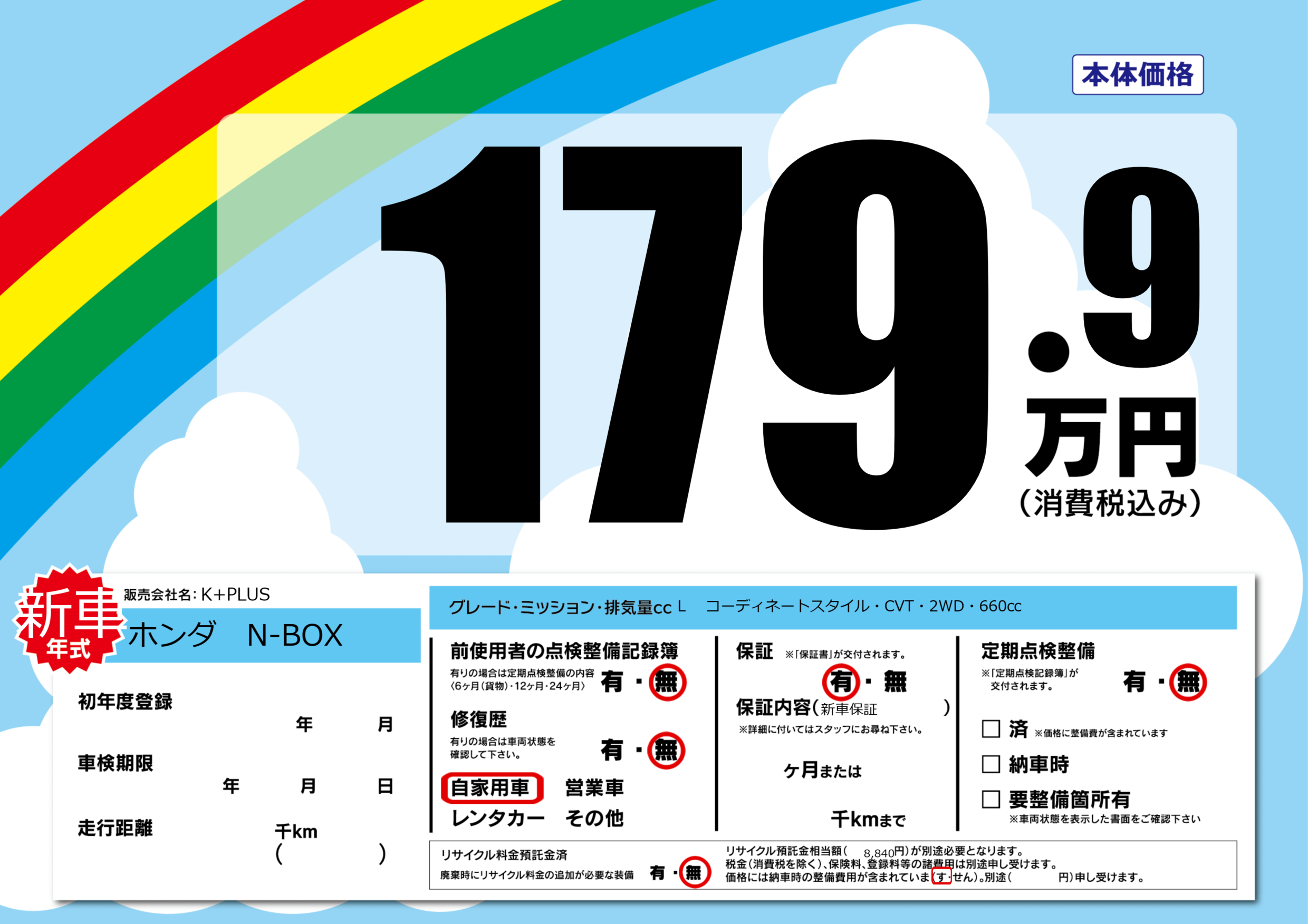 | 定期点検整備 | 定期点検整備なし | ||