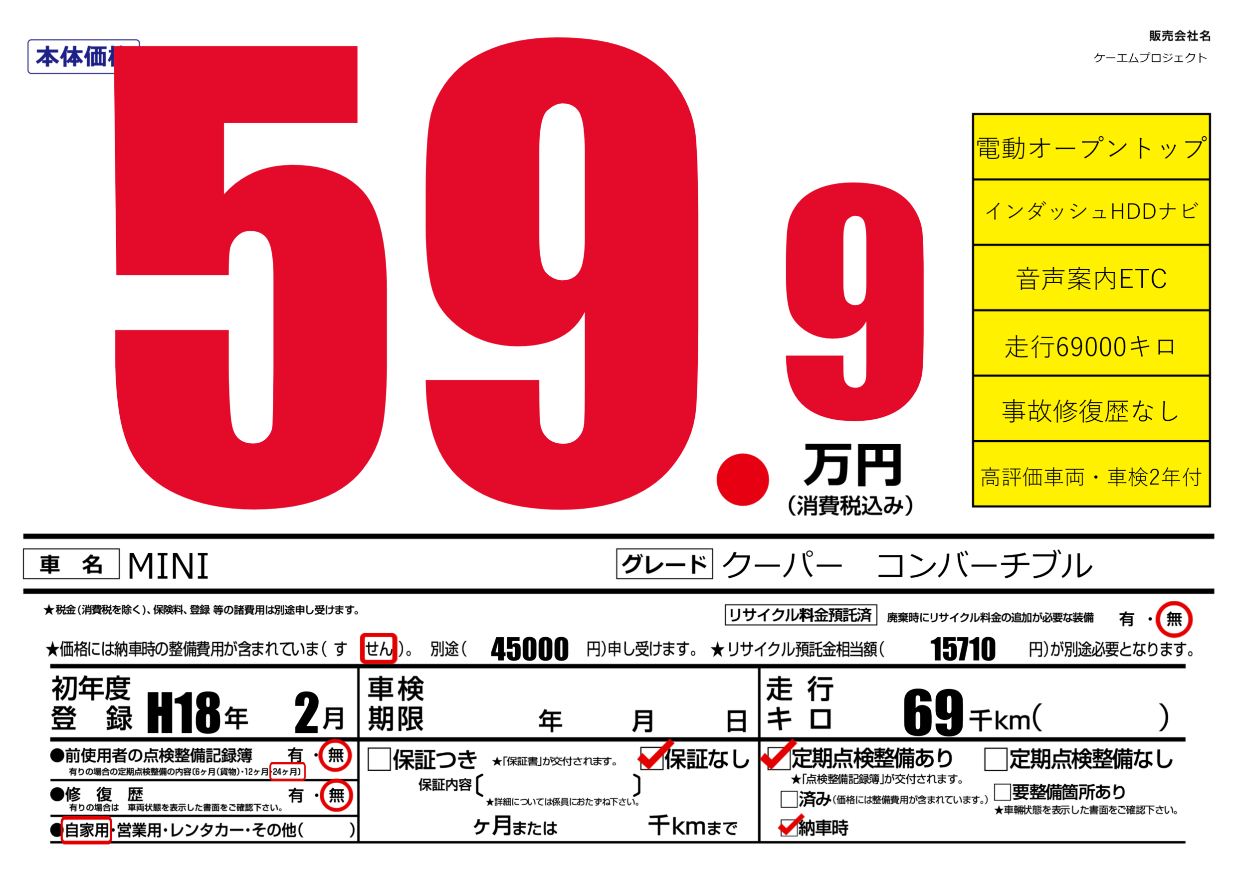 | 定期点検整備 | 定期点検整備あり 納車時あり | ||