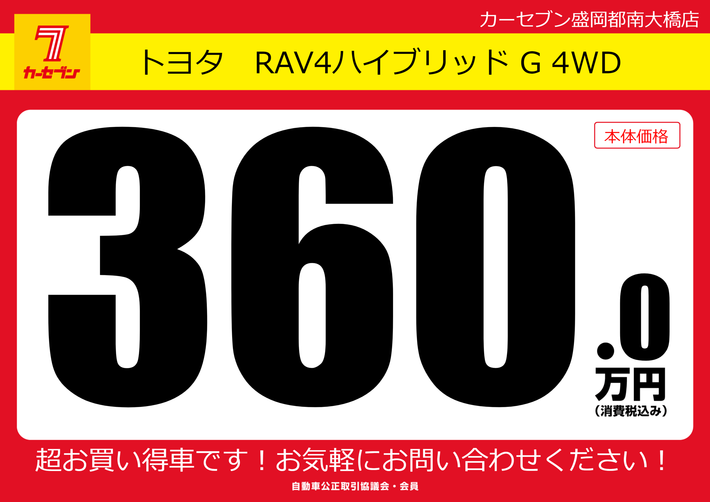 | 車名 | トヨタ RAV4ハイブリッド G 4WD | グレード ミッション 排気量 |