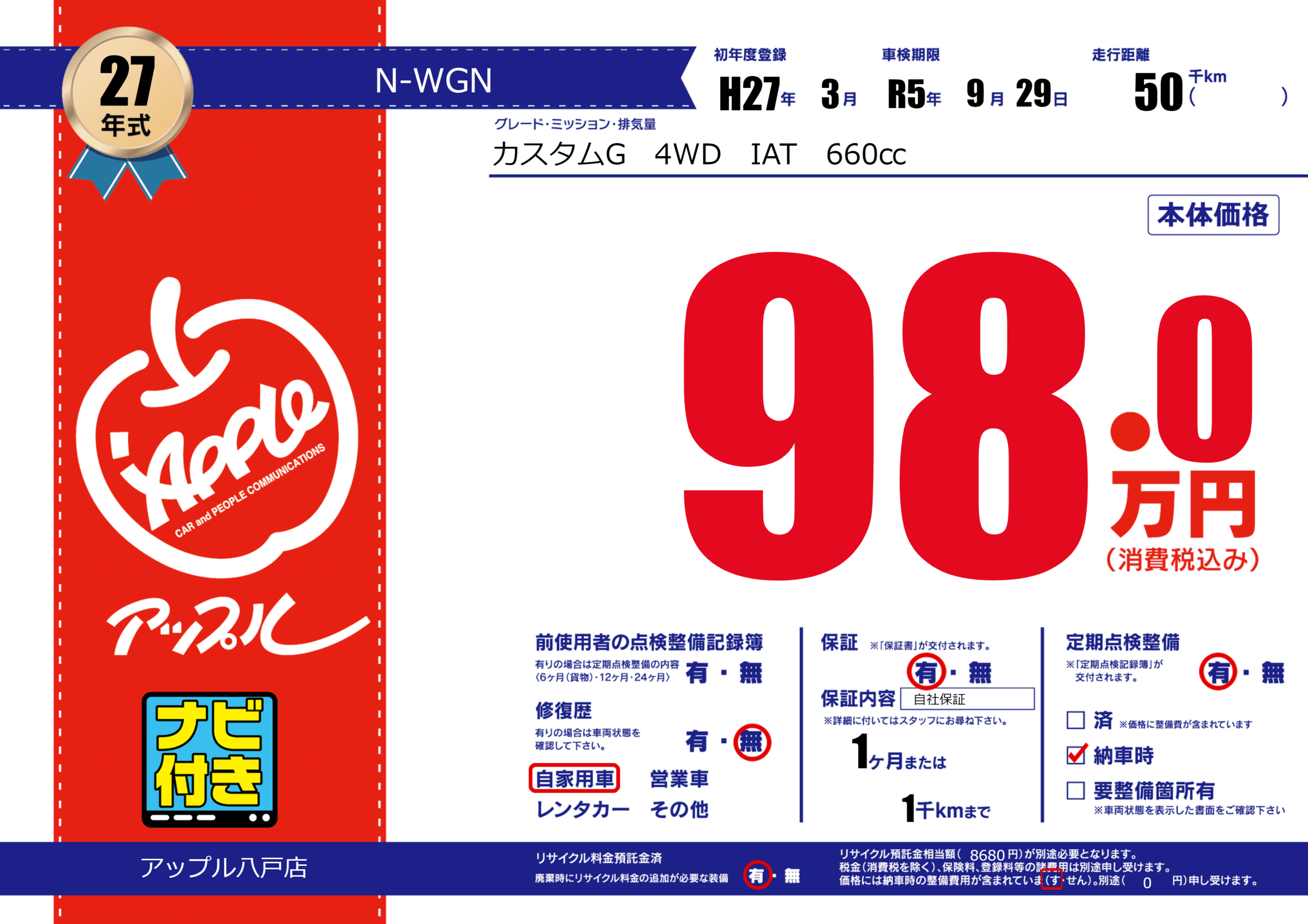 | 車名 | N-WGN | グレード ミッション 排気量 |