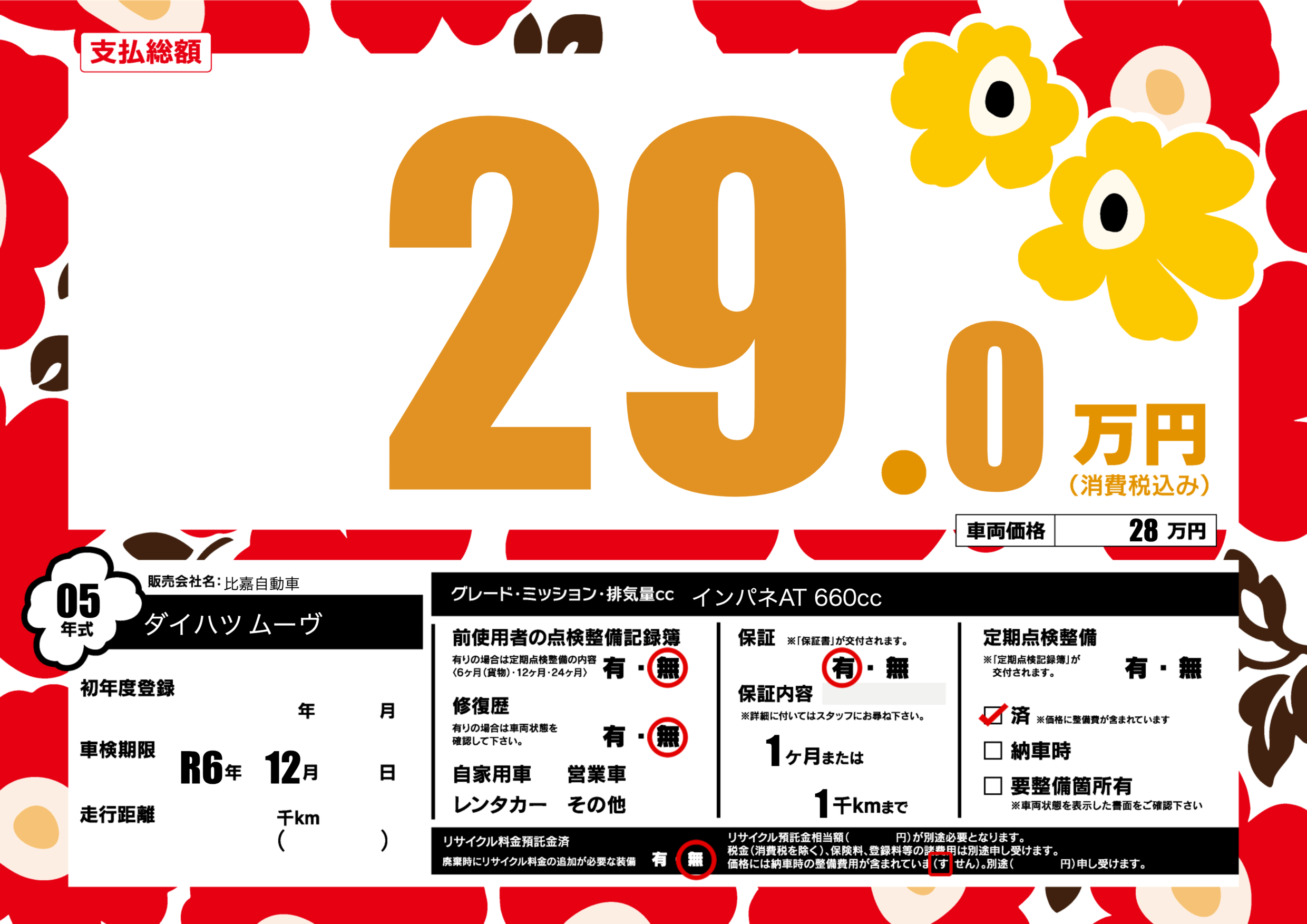保証付き 保証内容(---) 1ヶ月または(1)千kmまで |