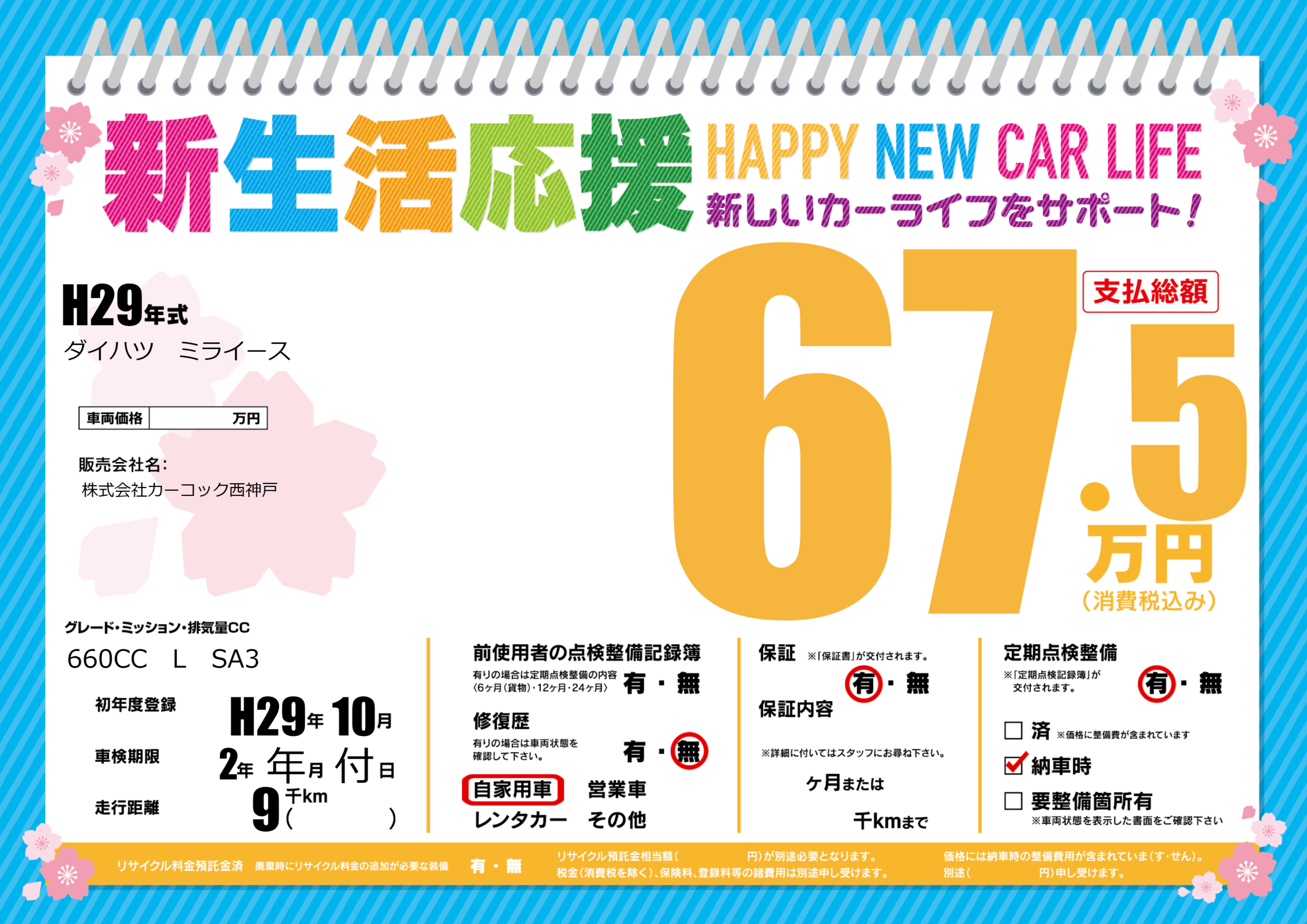 | 定期点検整備 | 定期点検整備あり 納車時あり | ||