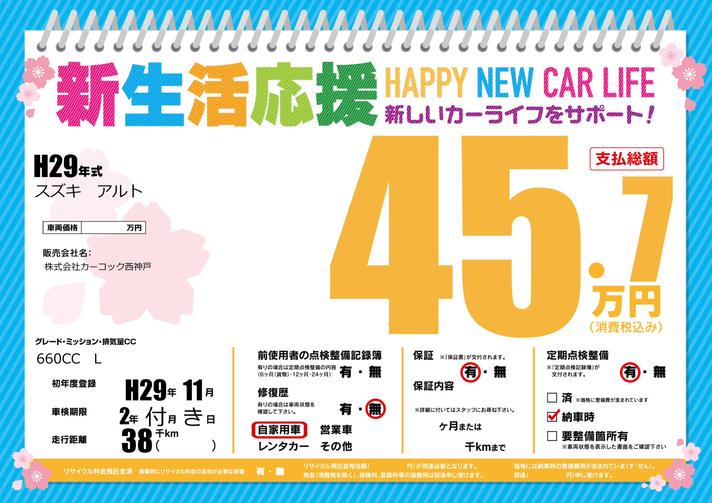 | 定期点検整備 | 定期点検整備あり 納車時あり | ||