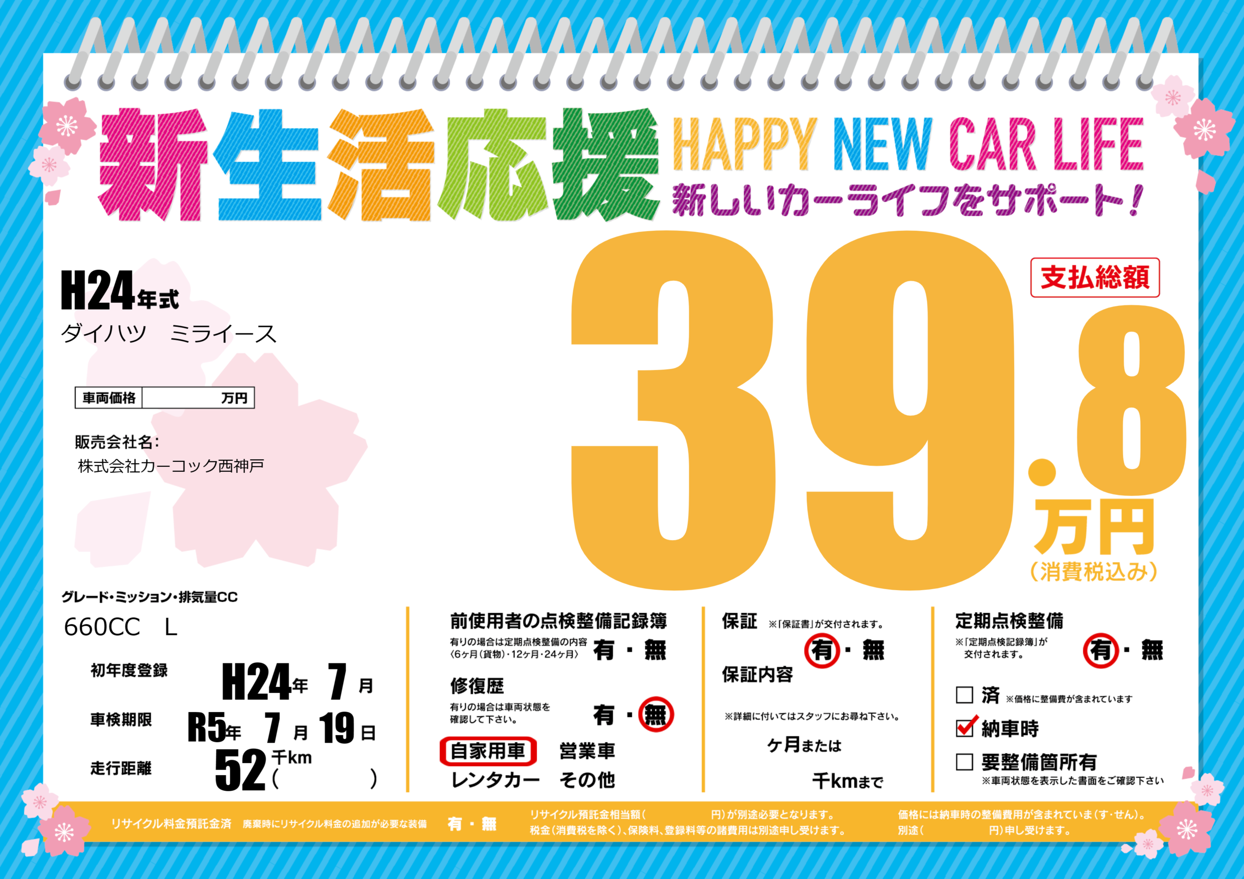 | 定期点検整備 | 定期点検整備あり 納車時あり | ||
