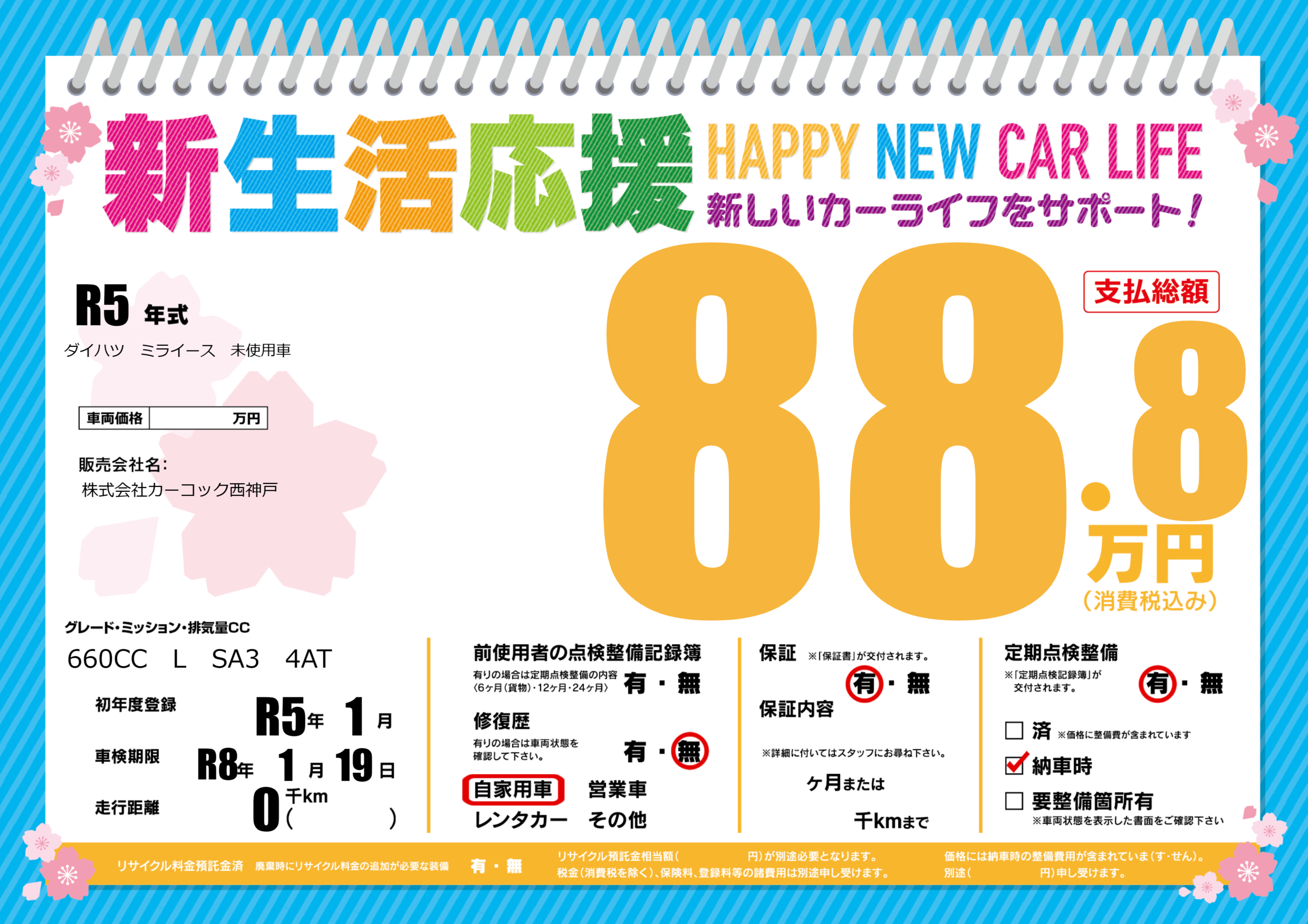 | 車名 | ダイハツ ミライース 未使用車 | グレード ミッション 排気量 |
