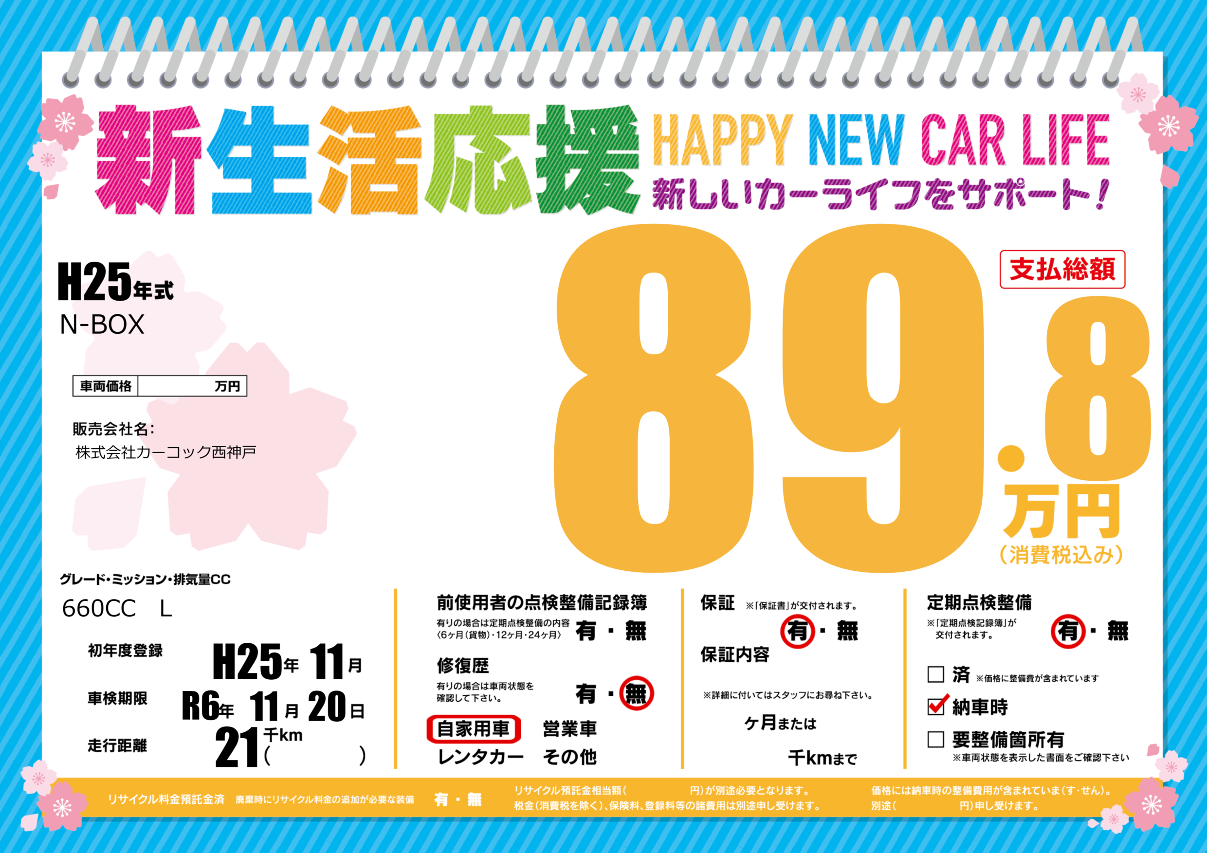 | 定期点検整備 | 定期点検整備あり 納車時あり | ||