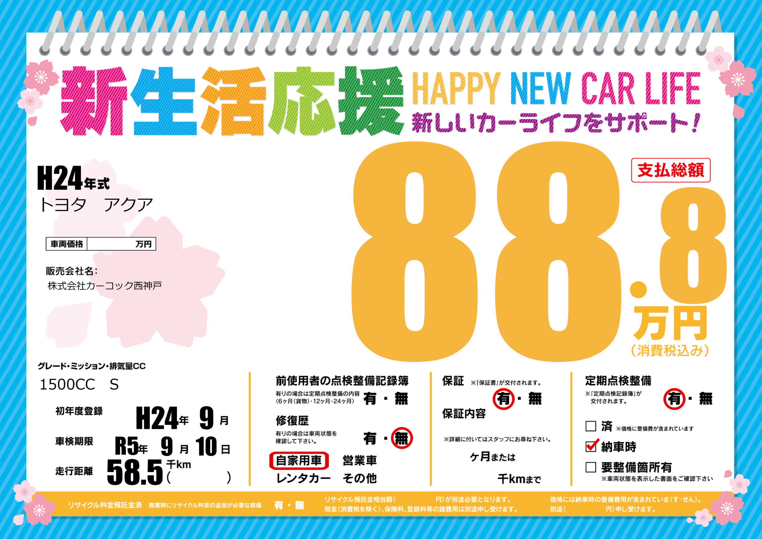 なし | 車検制限 | R5年9月10月 |