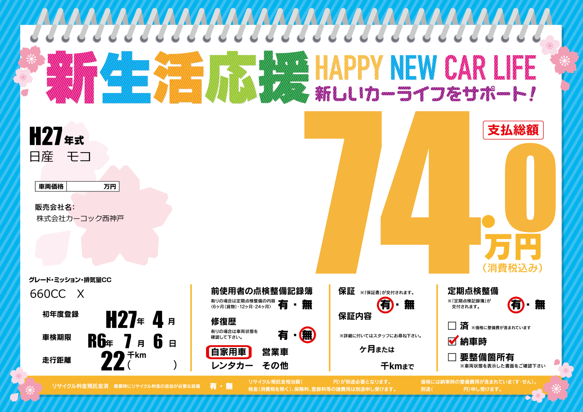 | 車名 | 日産 モコ | グレード ミッション 排気量 |