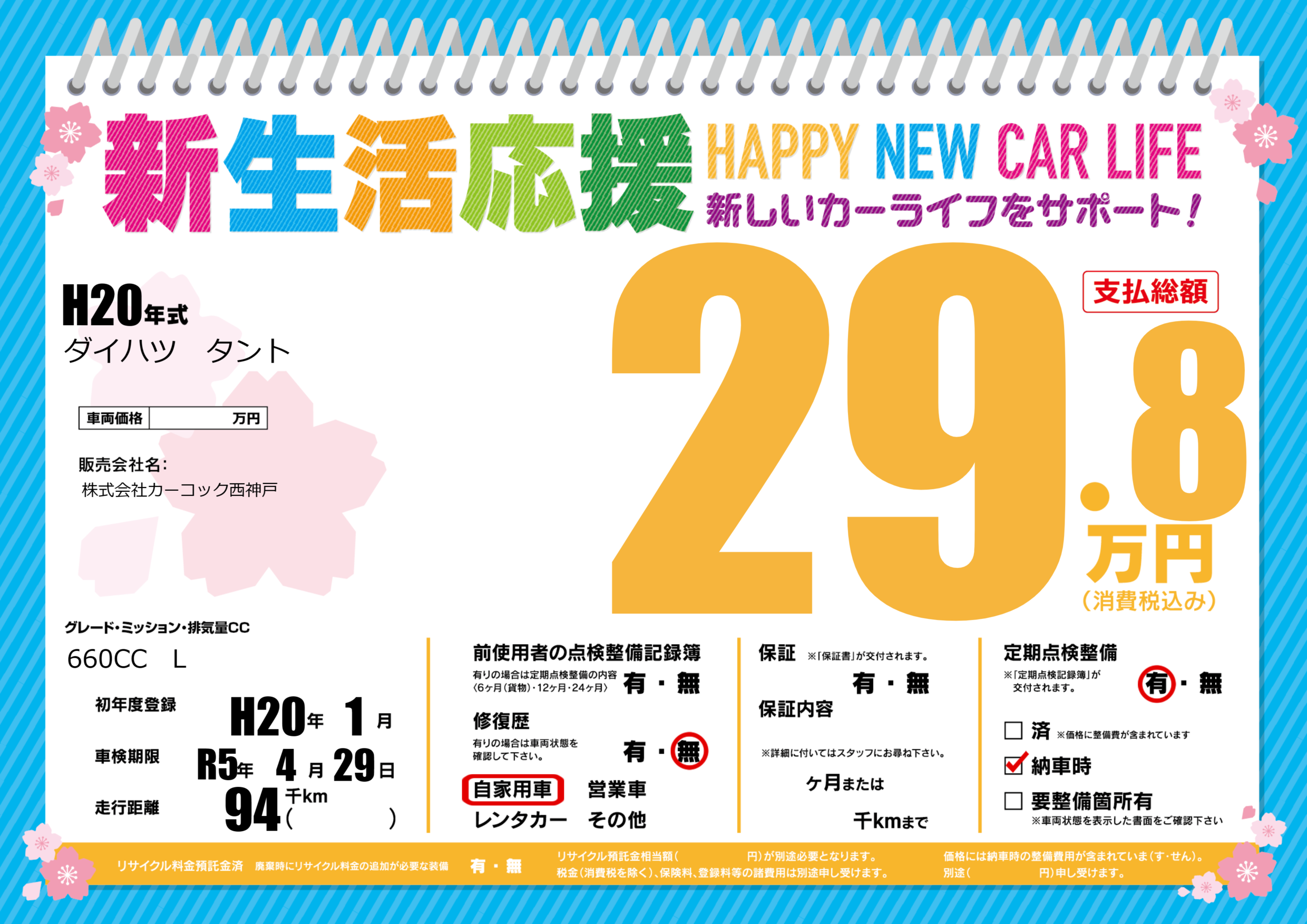 | 車名 | ダイハツ タント | グレード ミッション 排気量 |