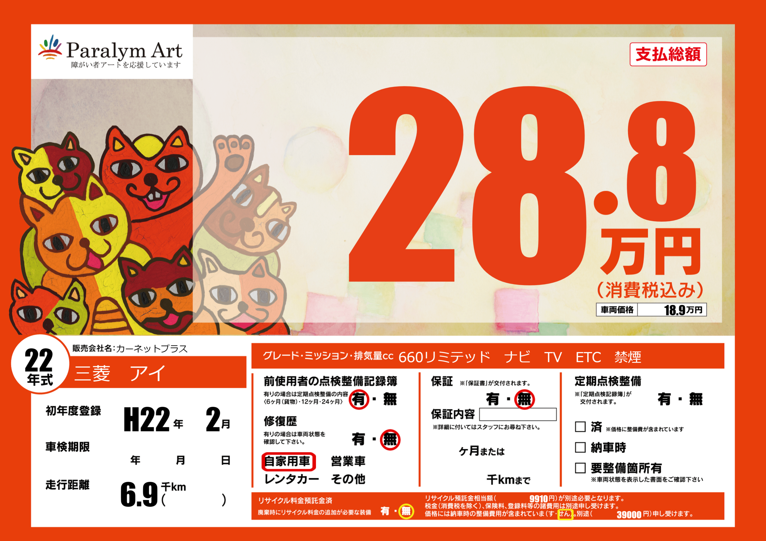 | 走行キロ | 0.6万km | 初年度登録 | H22年2月 |